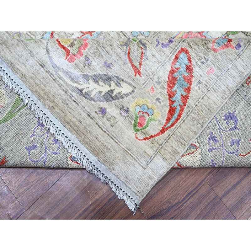 10’1″x13’8″ Tan Color, Finer Peshawar with Uzbek Suzani Design Densely Woven Natural Dyes, 100% Wool Hand Knotted, Oriental Rug Sh73680