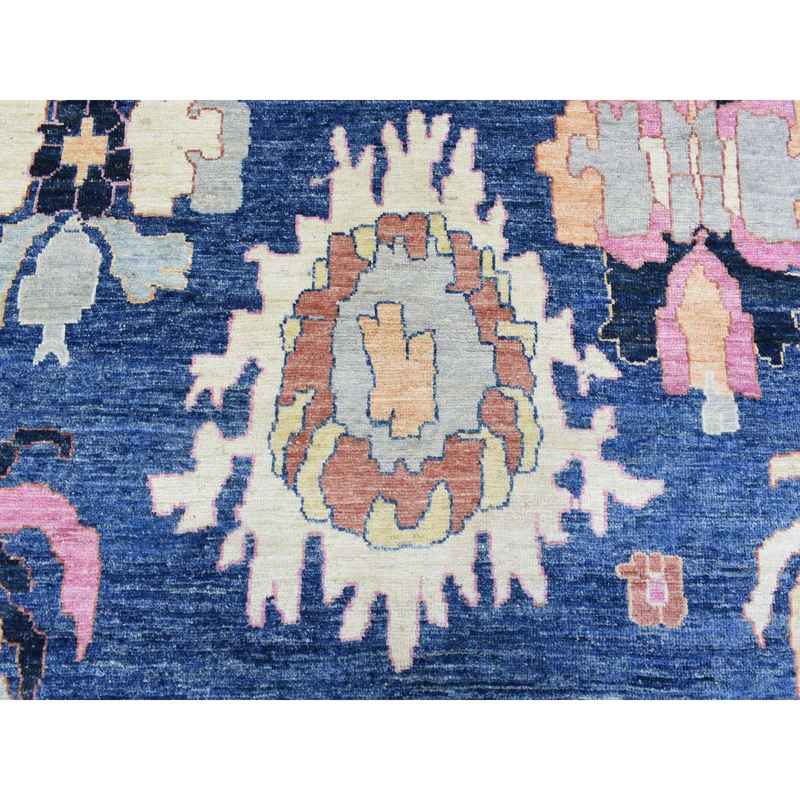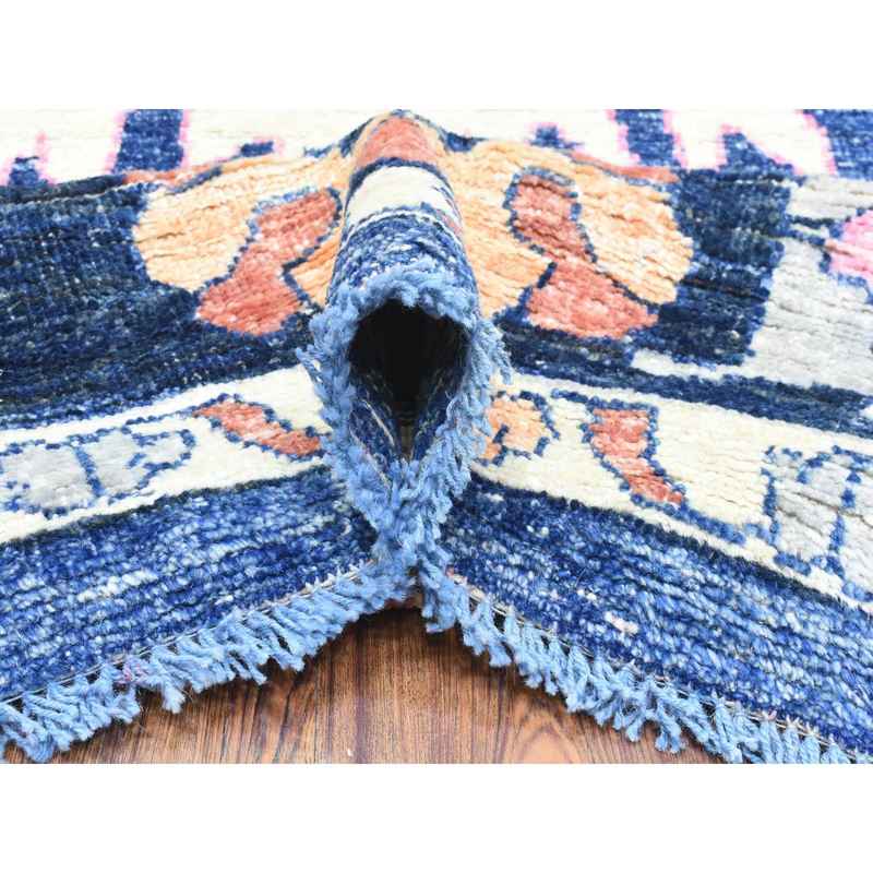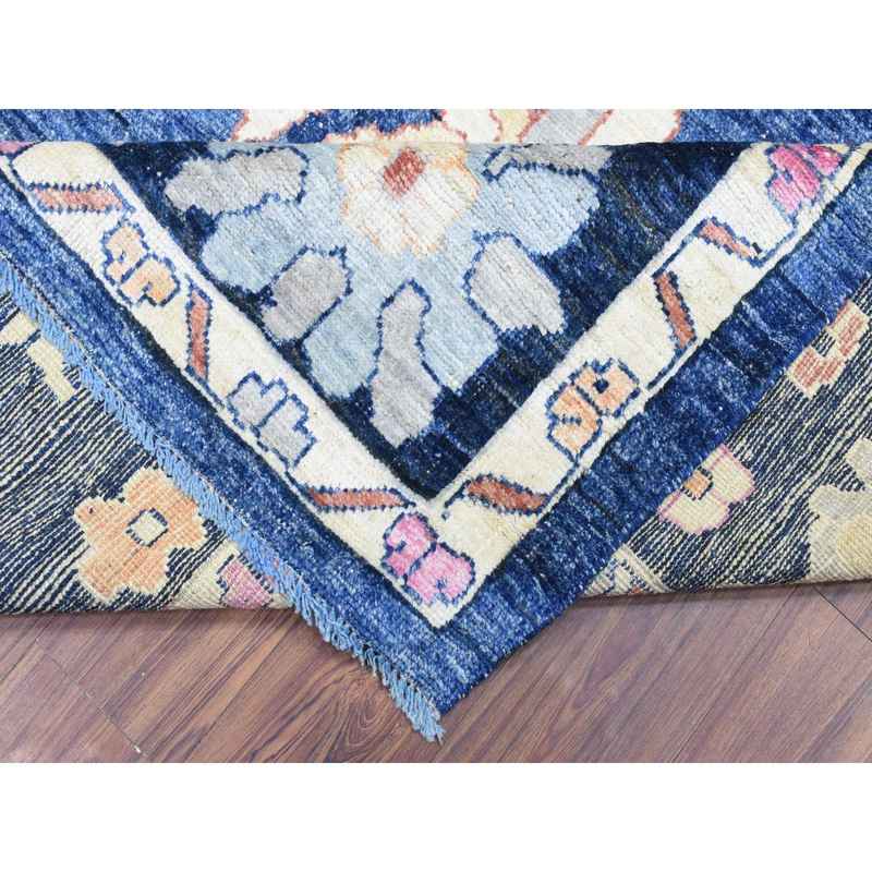 10’3″x10’3″ Sapphire Blue, Hand Knotted Afghan Angora Oushak with Pop of Color, Natural Dyes Extra Soft Wool, Square Oriental Rug Sh72988