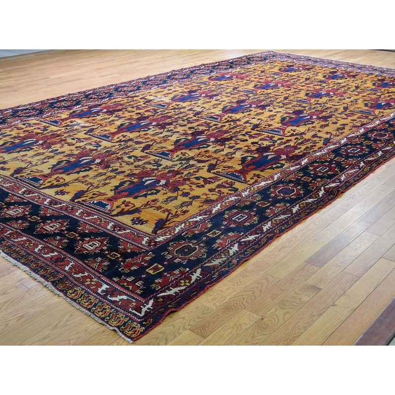 10’4″x17’7″ Golden Yellow Antique Persian Gallery Size Bakhtiari Pure Wool Hand-Knotted Oriental Rug Sh44872