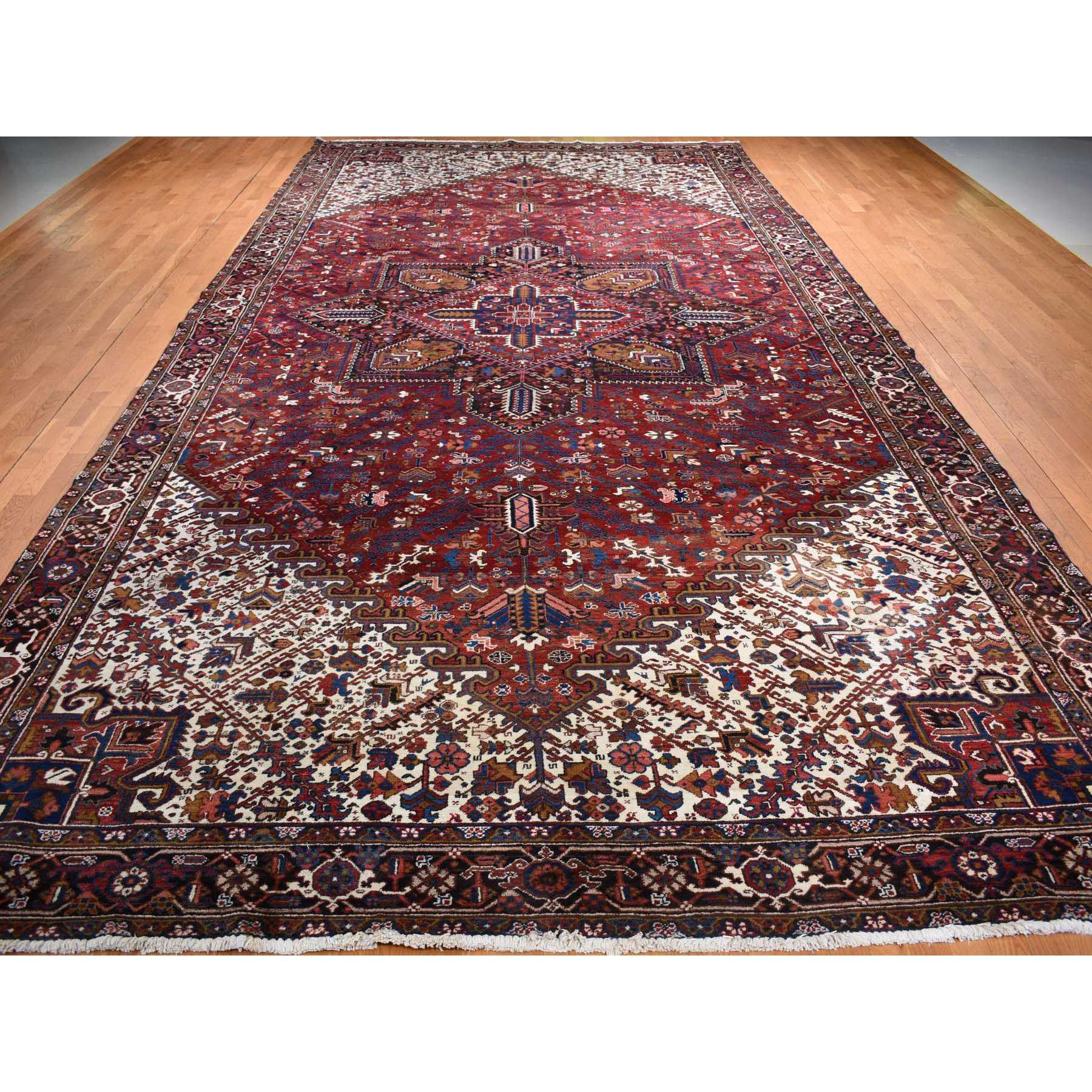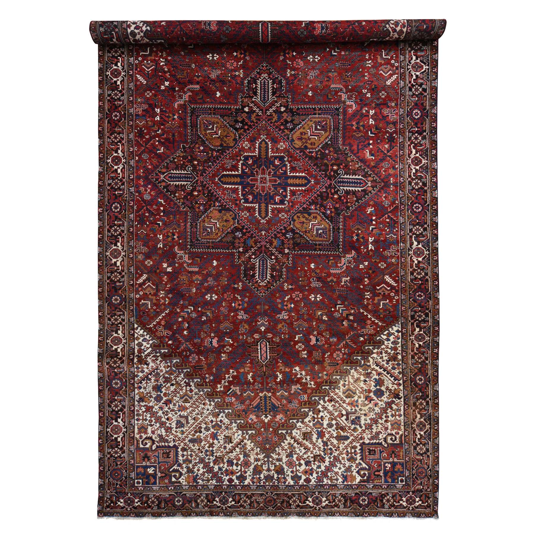 10’9″x22’5″ Claret Red, Semi Antique Persian Heriz, Full Pile, Clean and in Excellent Condition, Rare Long and Narrow Gallery Size, Thick and Plush, 100% Wool Hand Knotted, Oriental Rug Sh78172