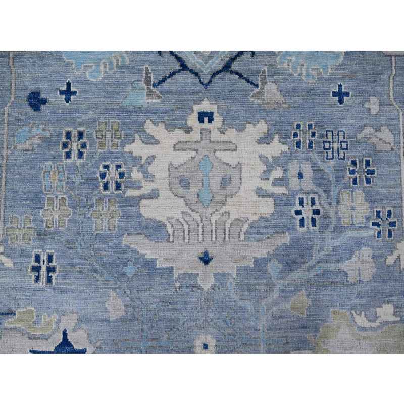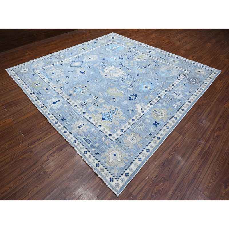 10’x10′ Air Force Blue, Hand Knotted, Natural Dyes, Vibrant Rural Flower And Leaf Design, Wool Weft, Angora Oushak, Square Oriental Rug Sh88687