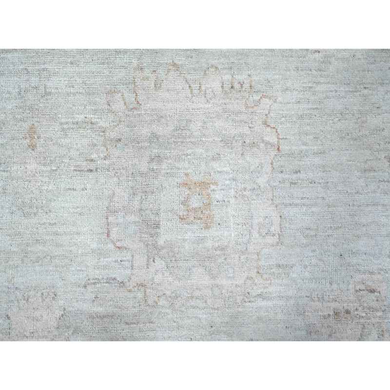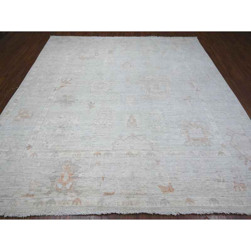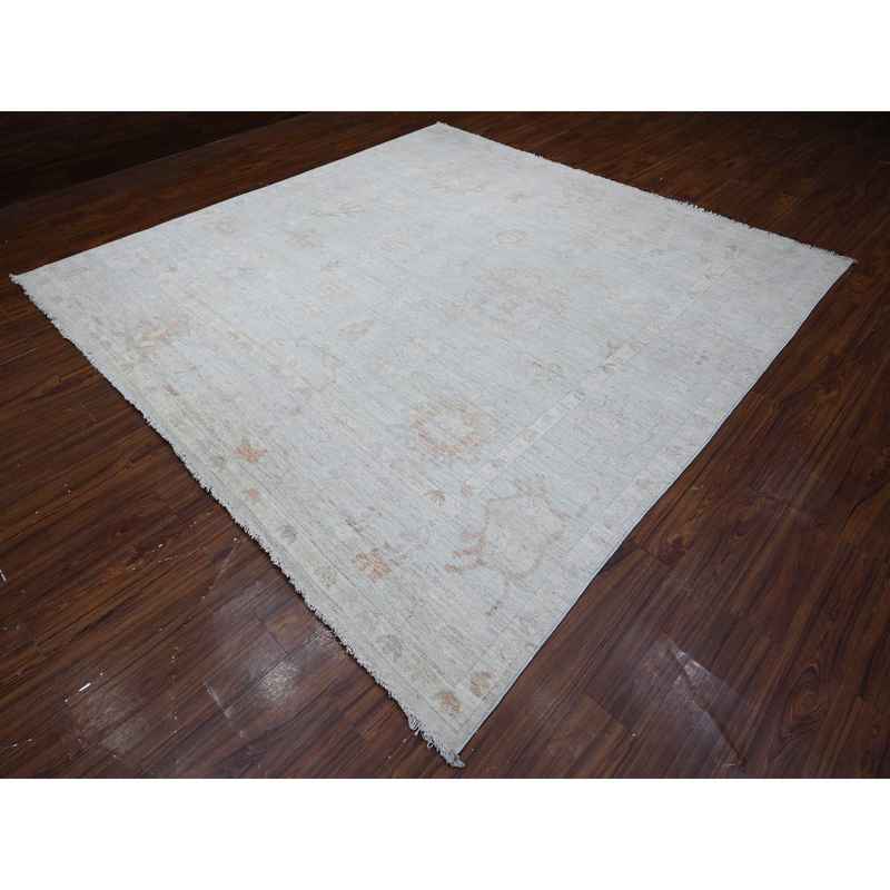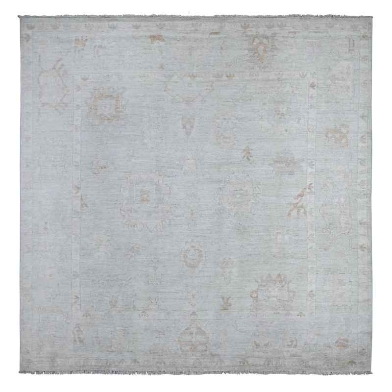 10’x10′ Cornflower Blue, Rural Flower And Leaf Design, Faded, Wool Weft, Hand Knotted, Afghan Angora Oushak, Square Oriental Rug Sh88942