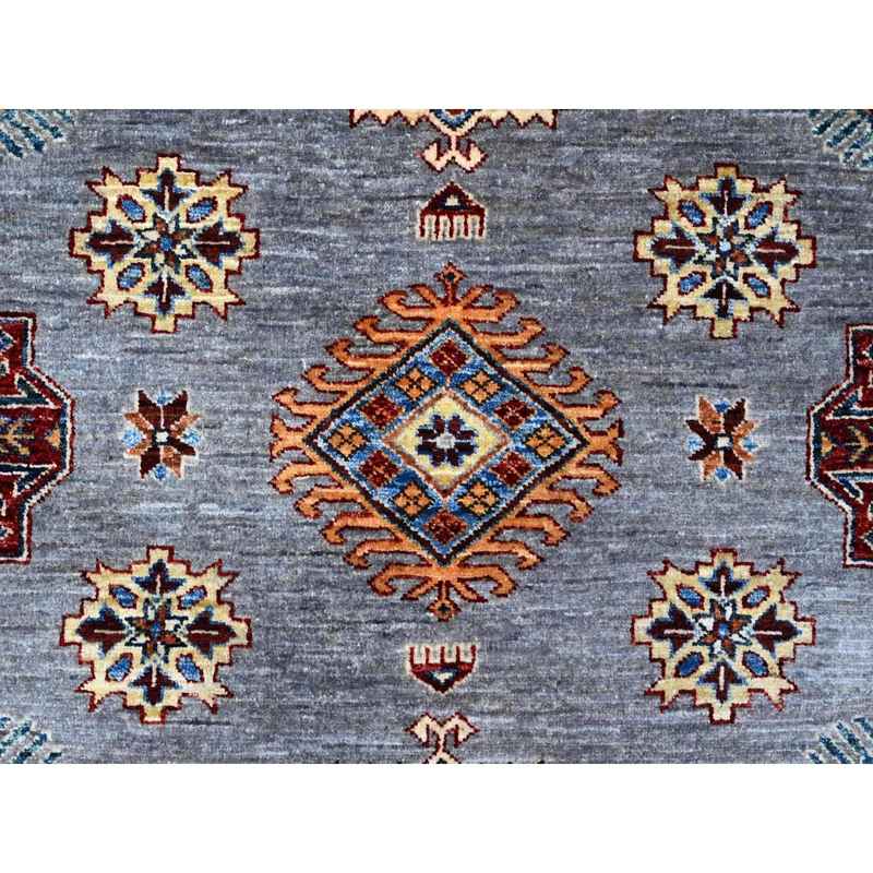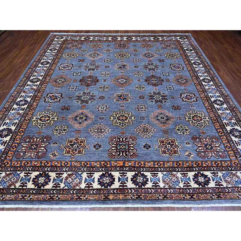 10’x10′ Flower Box Gray With Promenade White, Hand Knotted Afghan Super Kazak, Natural Dyes, Vibrant Wool, Repetitive Medallions, Oriental Square Rug Sh89297