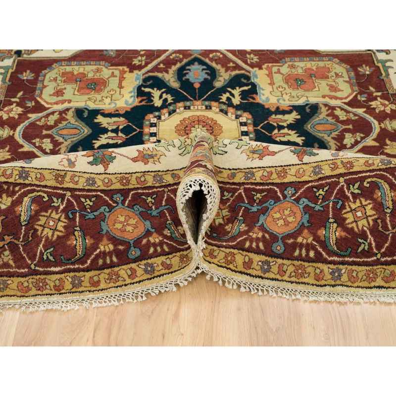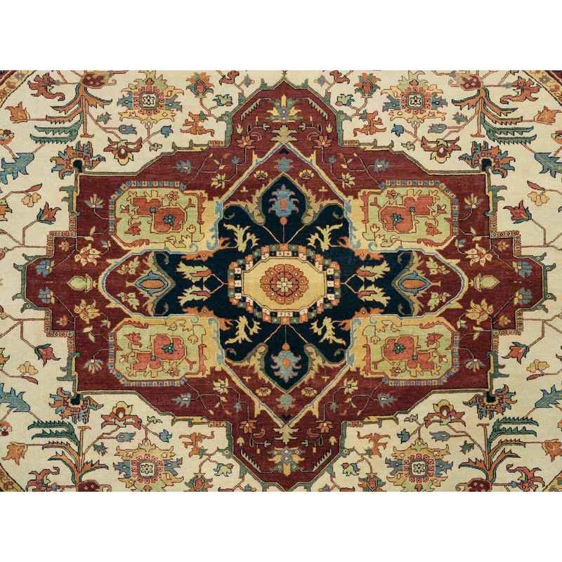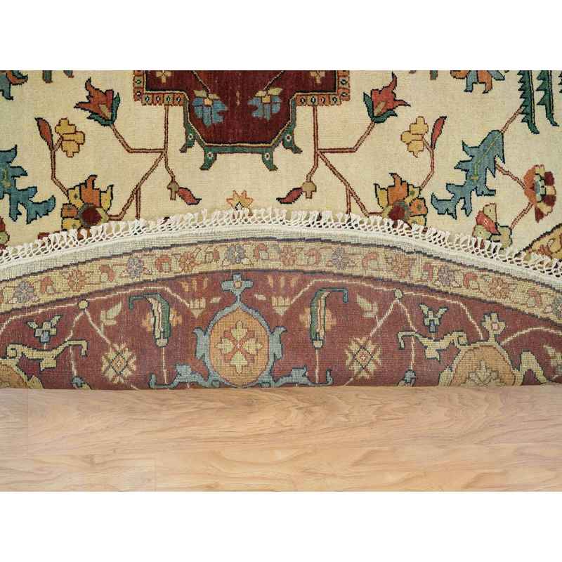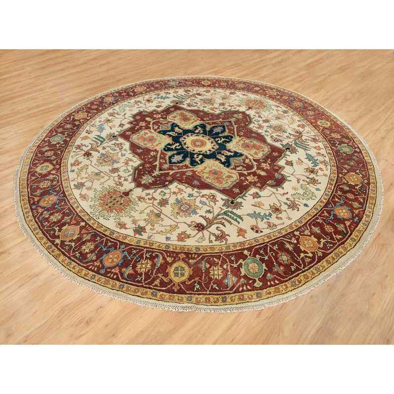 10’x10′ Ivory, Antiqued Fine Heriz, Re-Creation, Hand Knotted, 100% Wool, Round Oriental Rug Sh65517
