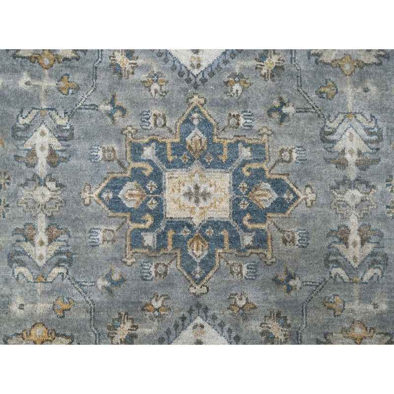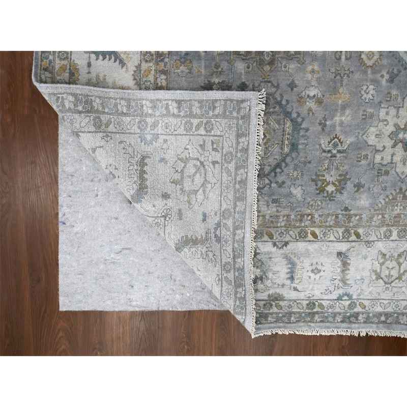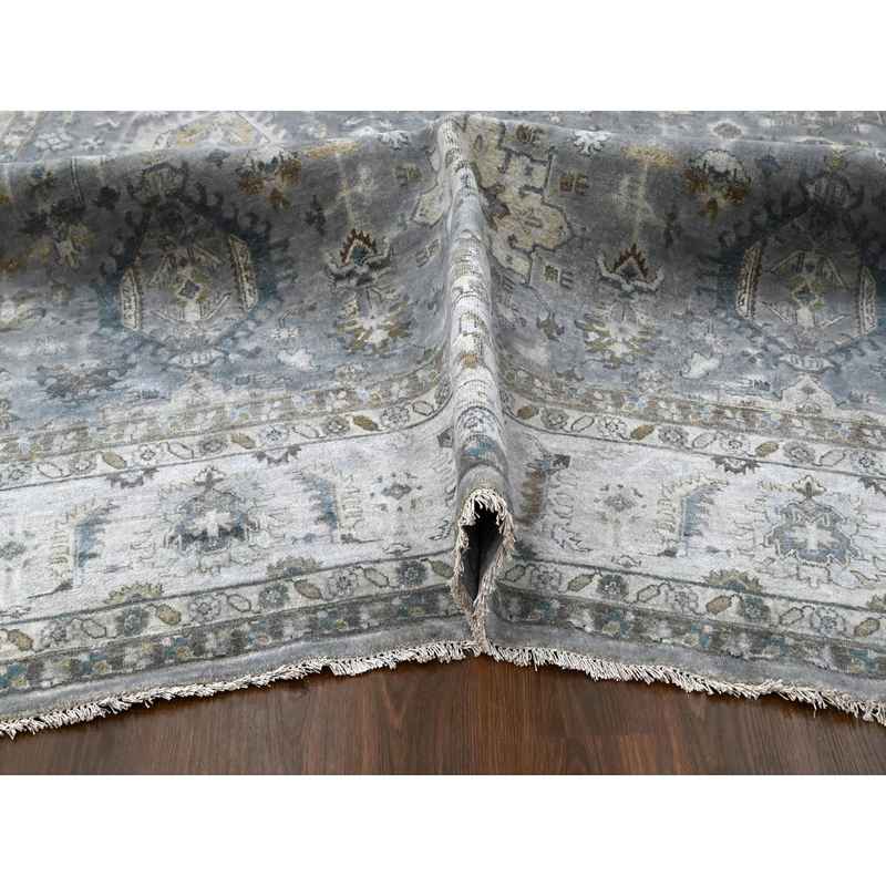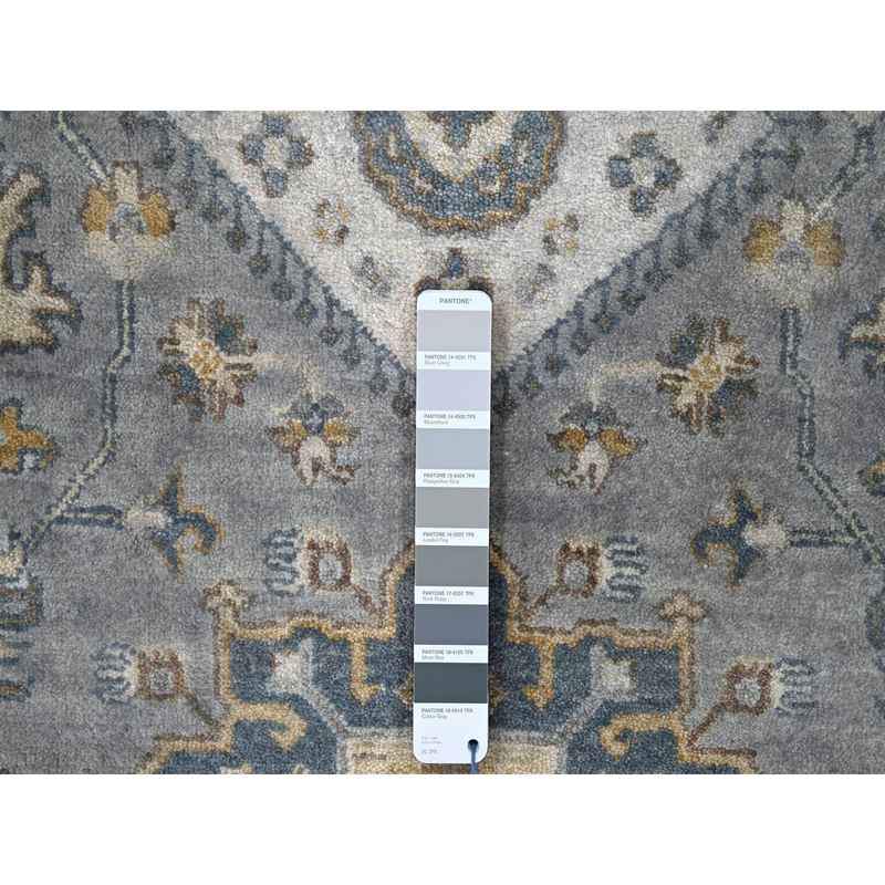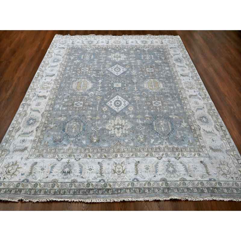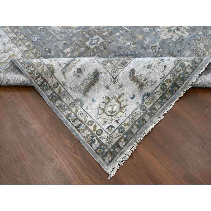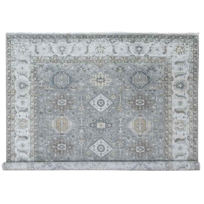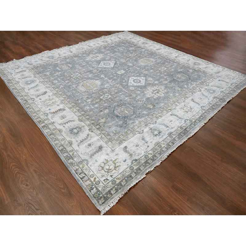 10’x10′ Rock Ridge Gray and Pepper White, Hand Knotted 100% Wool, Karajeh Design with Tribal Medallions, Vegetable Dyes Oriental Square Rug Sh84934
