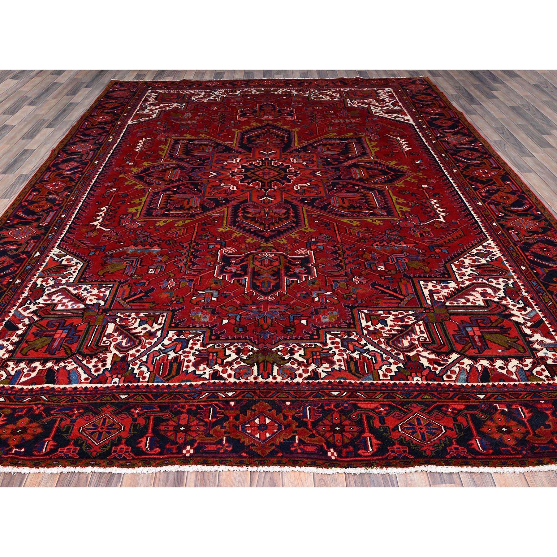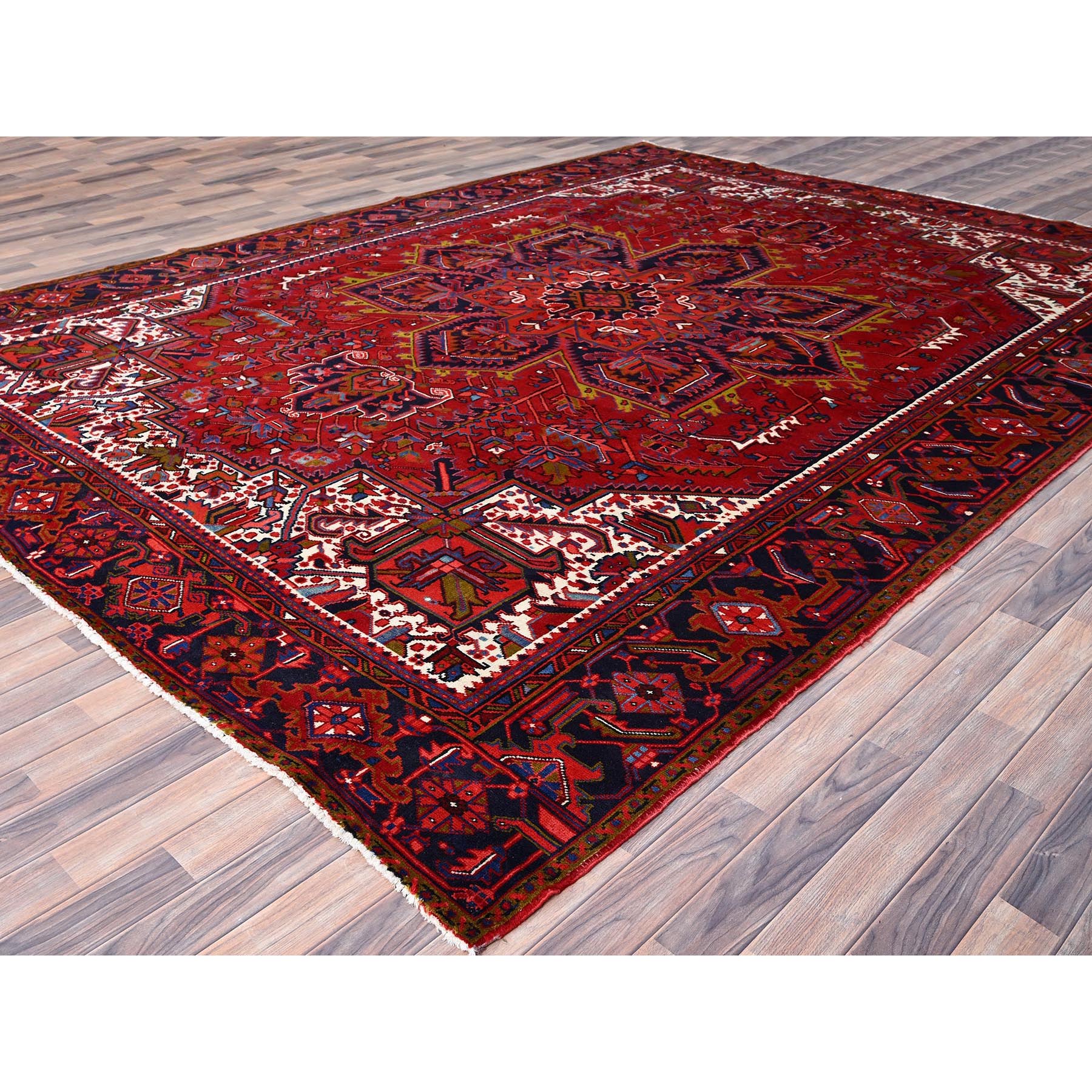 10’x12’9″ Goji Berry Red, Hand Knotted 100% Wool, Semi Antique Persian Heriz Tribal Ambience, Good Condition, Oriental Rug Sh85889