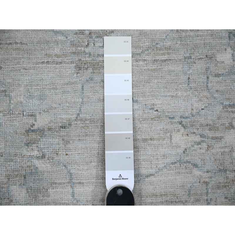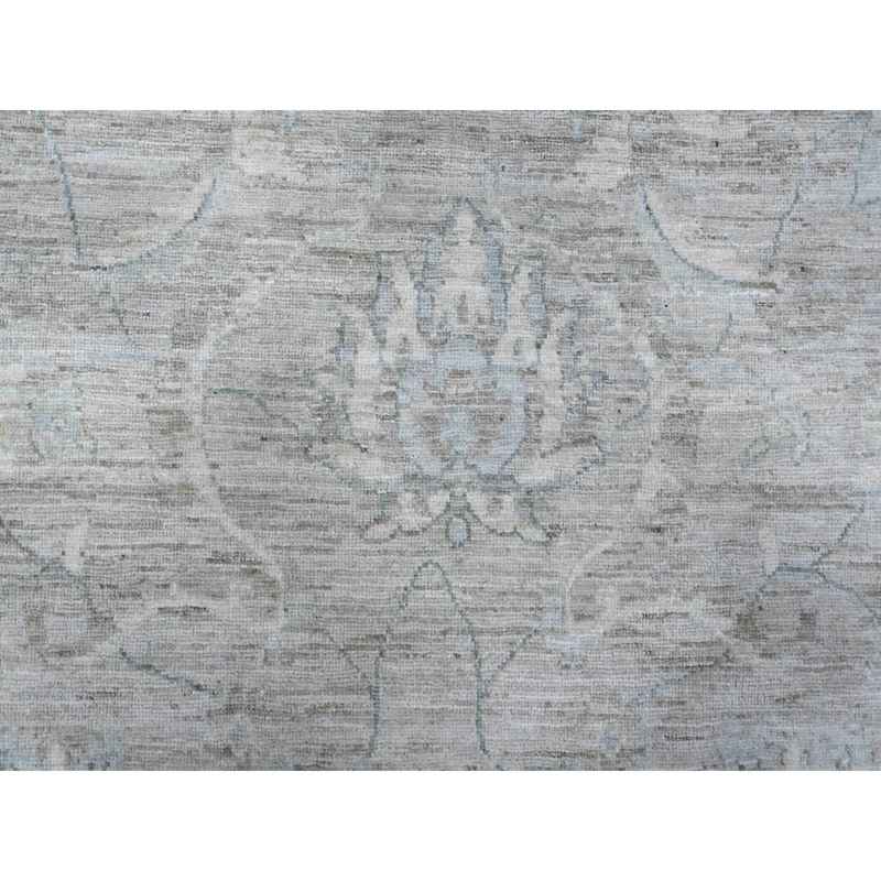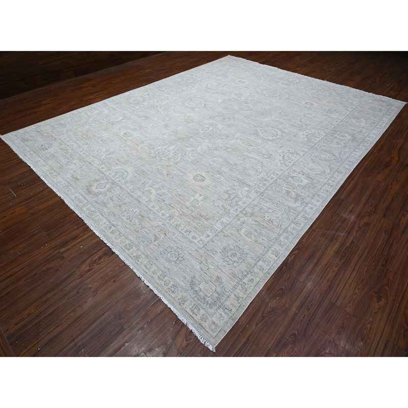 10’x13′ Pewter Gray, Hand Knotted, Natural Dyes, White Wash Fine Peshawar With Floral Design, Soft To The Touch, Velvety Wool, Oriental Rug Sh88743