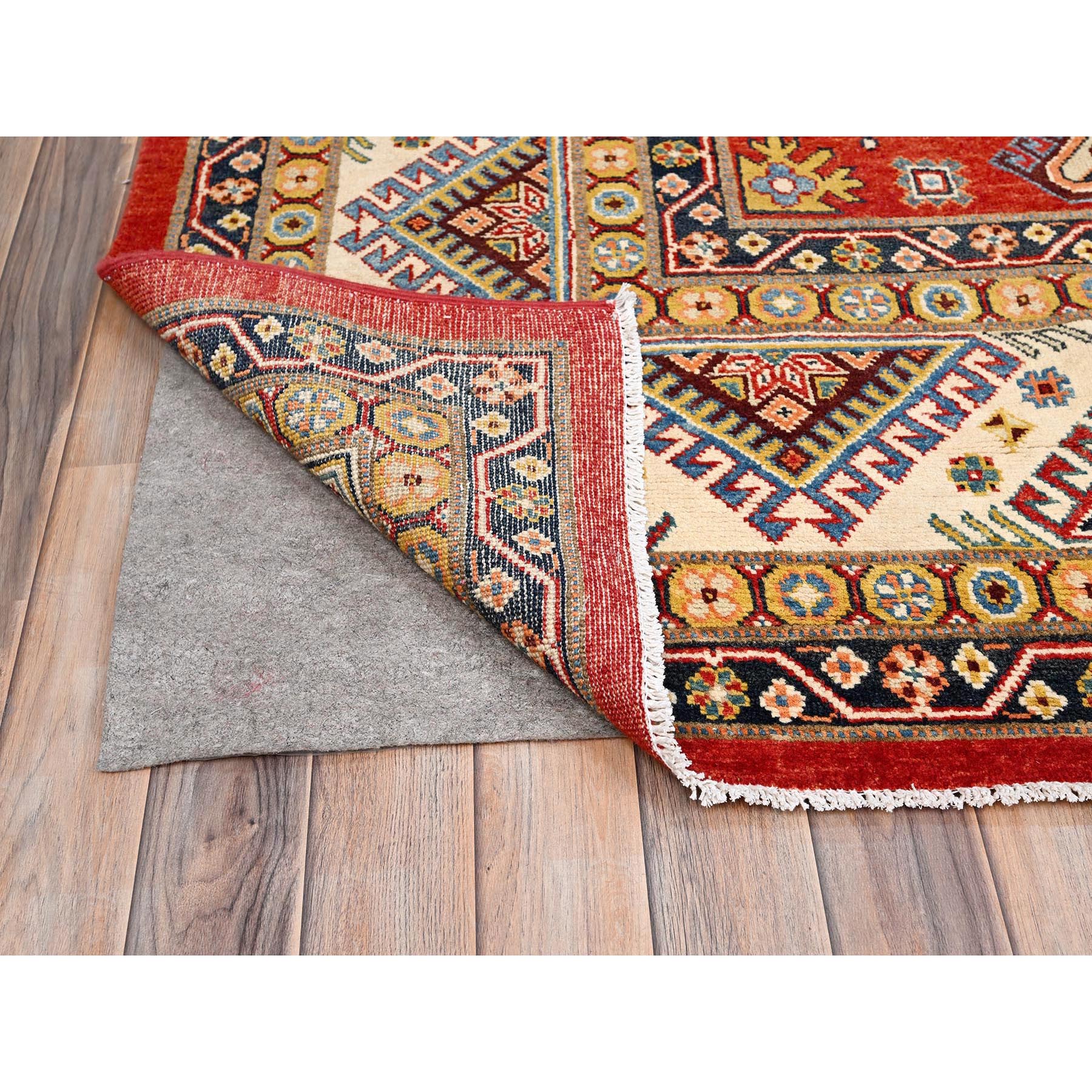 10’x14′ Desire Red, Special Kazak with Large Elements, Natural Dyes, Pure Wool, Hand Knotted, Oriental Rug Sh85410