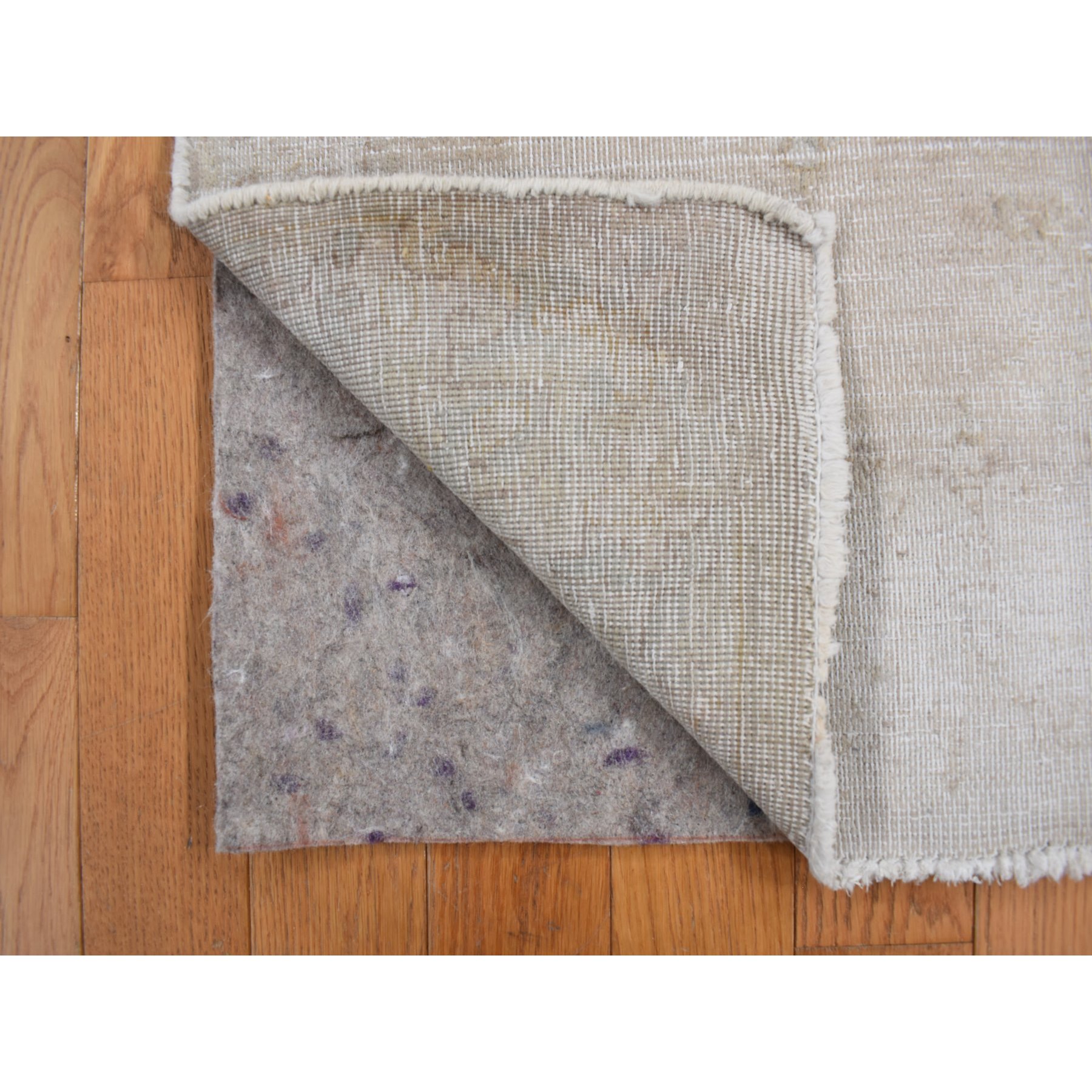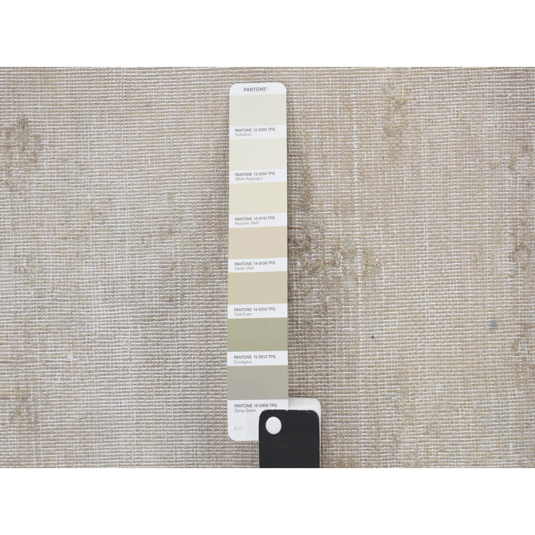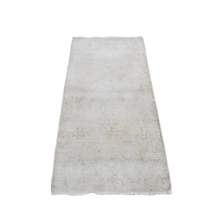 1’10″x3’10” Khaki Brown, Vintage Persian Kerman, Worn Down and Distressed, Hand Knotted, Pure Wool, Oriental Rug Sh78130