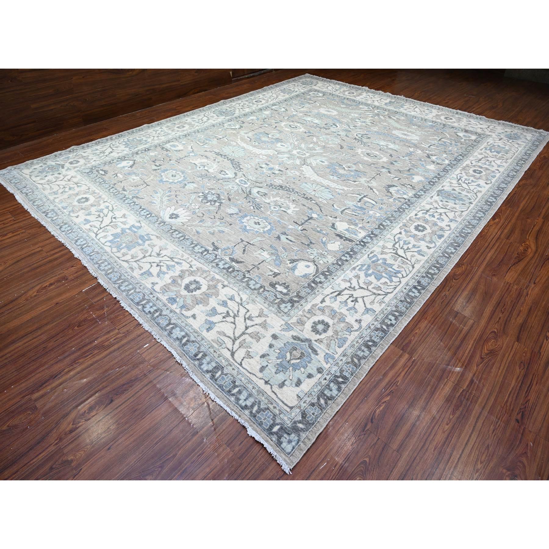11’6″x15′ Mineral Deposit Gray, Fine Peshawar Sickle Leaf Design, Hand Knotted, Denser Weave and Natural Dyes, Pure Wool Oversized Oriental Rug Sh88078