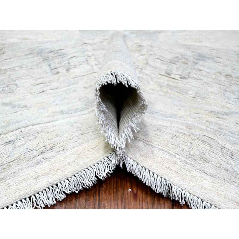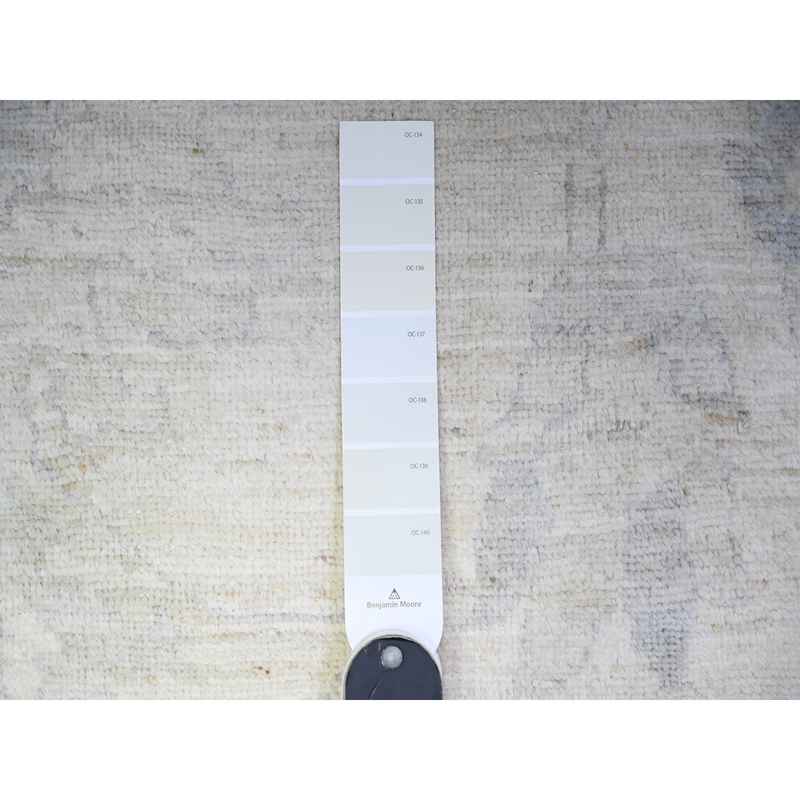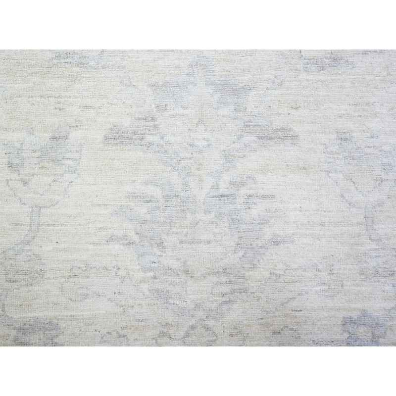 11’6″x15’3″ Dove White, Stone Wash Peshawar with Floral Design, Hand Knotted, Natural Dyes, Soft Wool, Oversized Oriental Rug Sh88141
