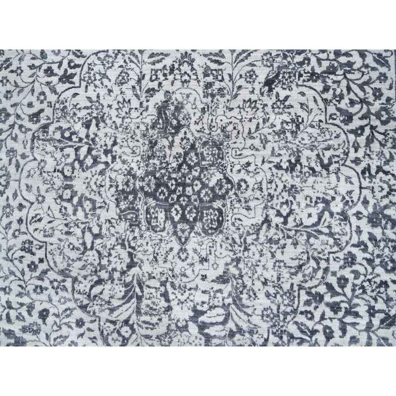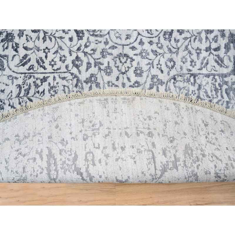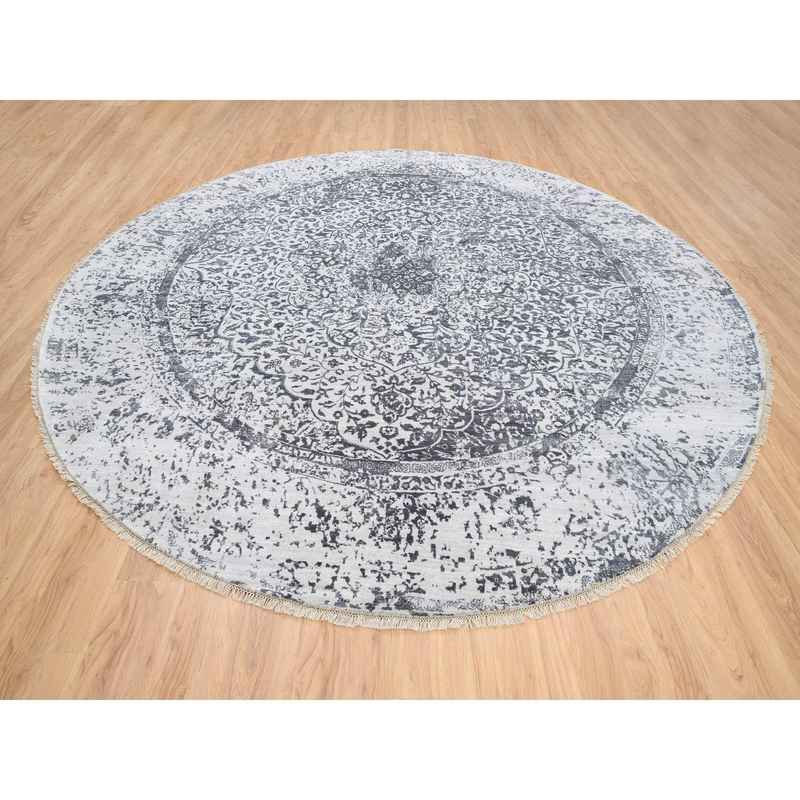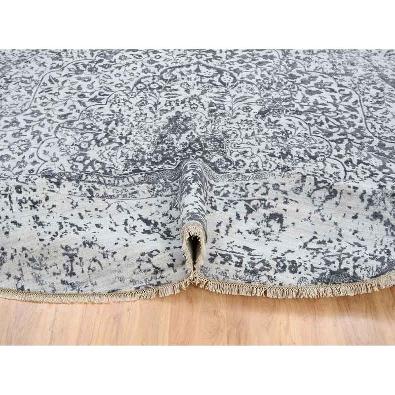 11’9″x11’9″ Silver Gray, Hand Knotted Erased Persian Design, Wool and Pure Silk, Round Oriental Rug Sh64058