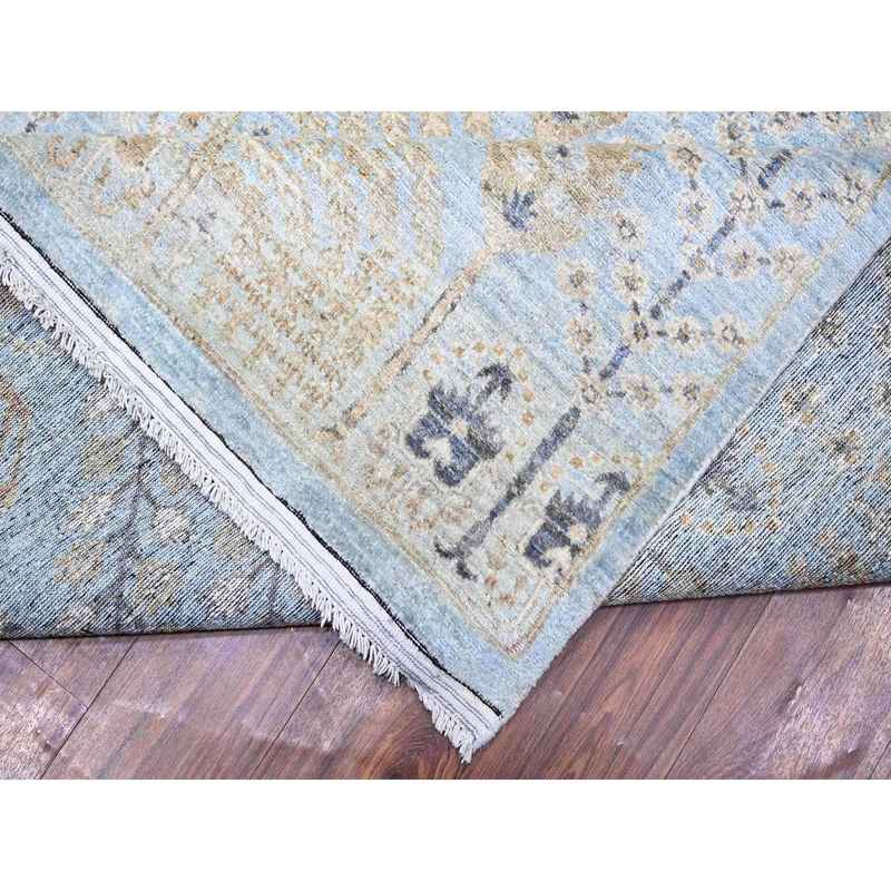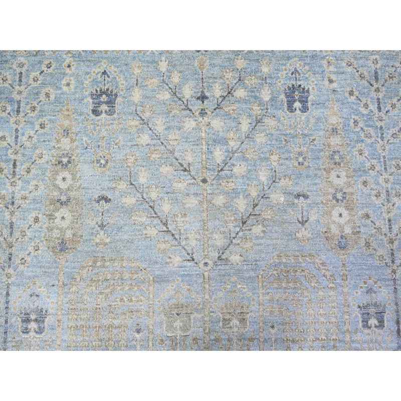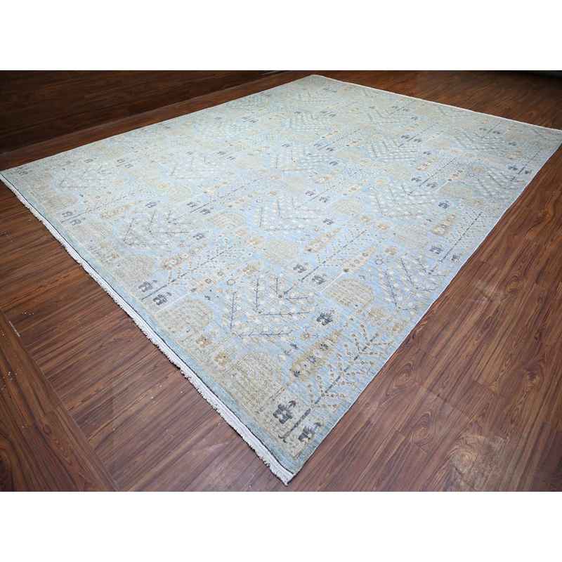 11’9″x15′ Ruddy Blue, Afghan Peshawar with Willow and Cypress Tree All Over Design, Borderless, Soft Wool, Hand Knotted, Oversized Oriental Rug Sh74627