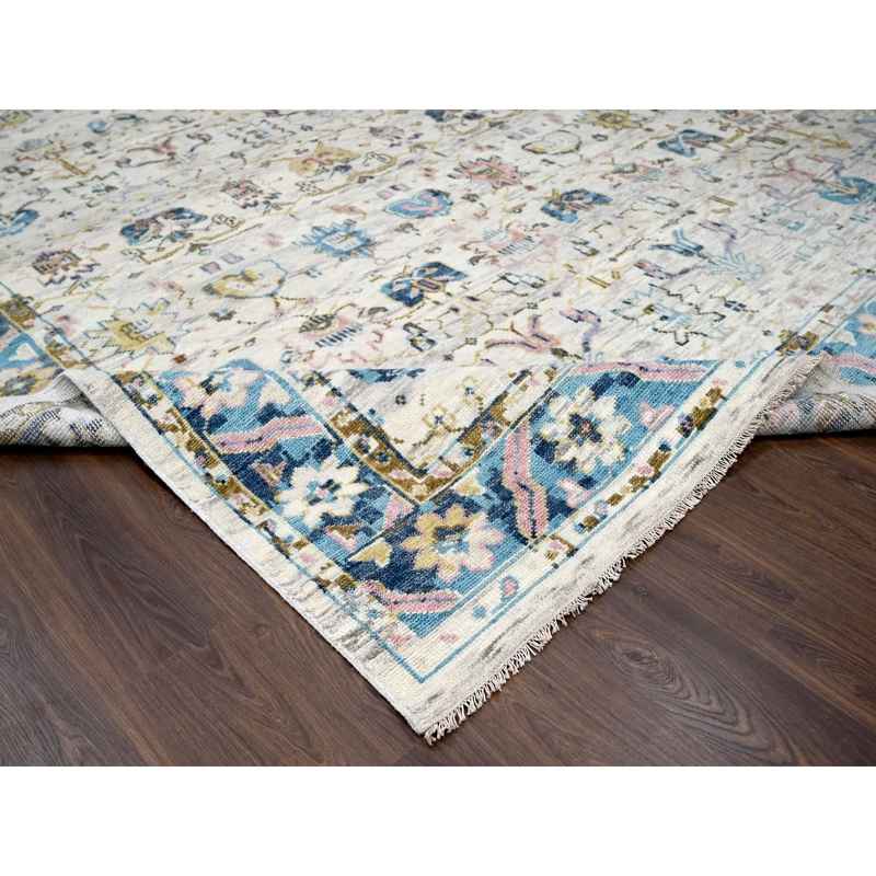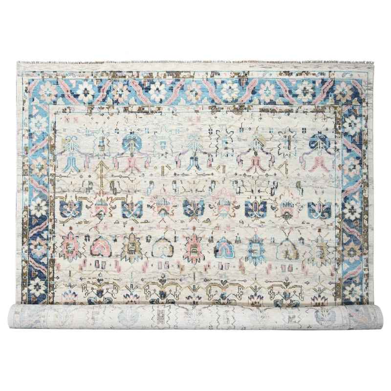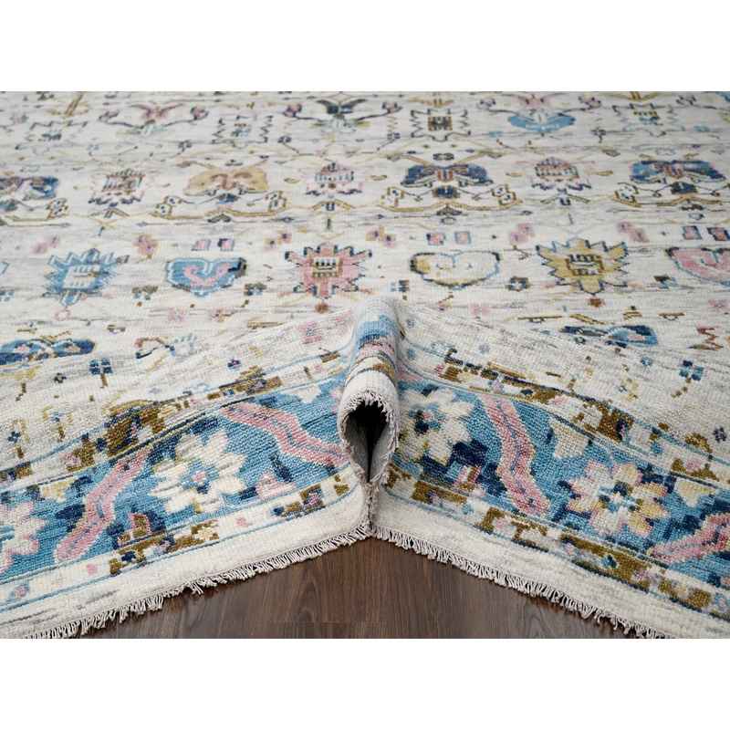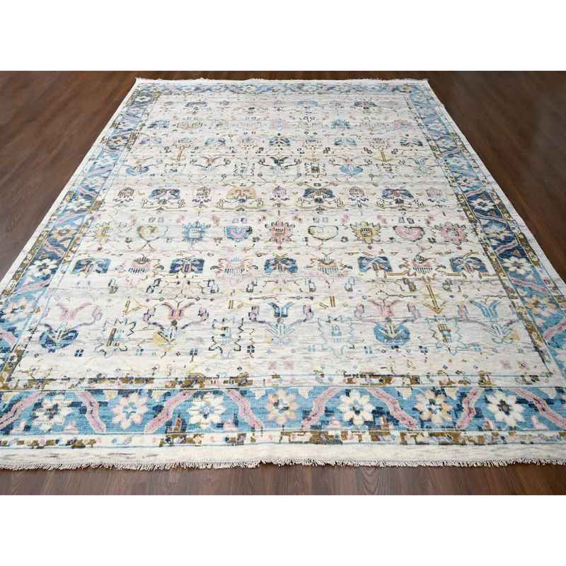 12’1″x14’10” Ivory and Sky Blue, Hand Knotted, Mahal Design, Supple Collection, Soft and Vibrant pile, 100% Wool, Vegetable Dyes, Oversize Oriental Rug Sh84362