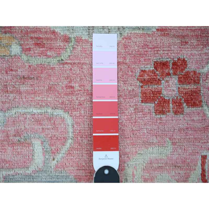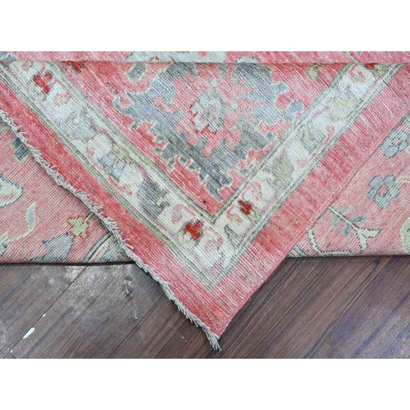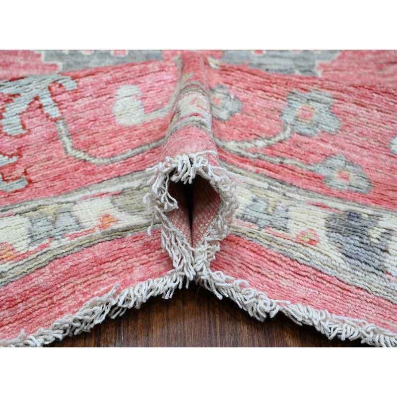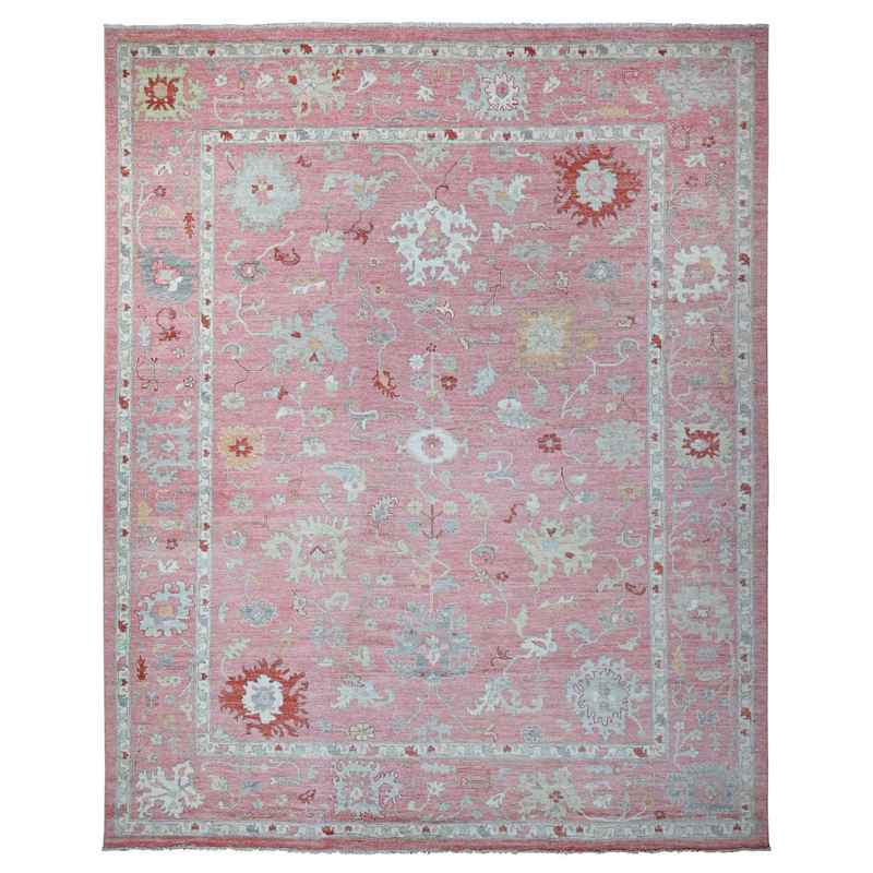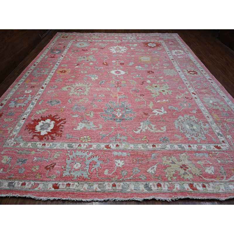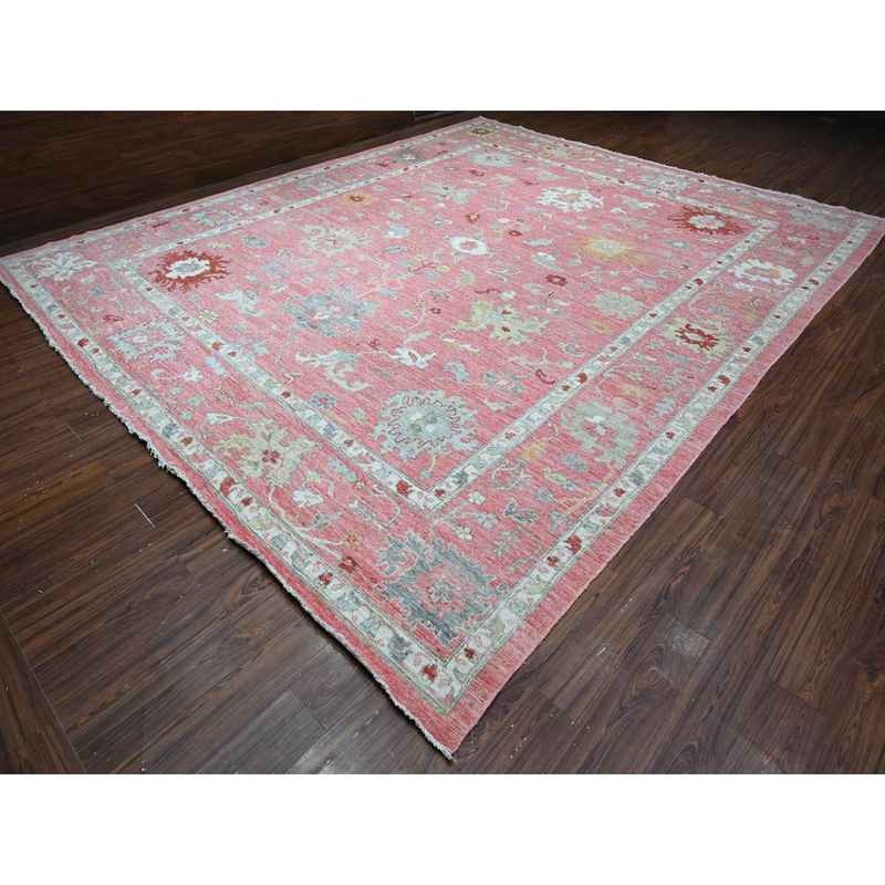 12’1″x14’7″ Blush Pink, Wool Weft, Hand Knotted, Afghan Angora Oushak, Rural Medallions All Over, Vegetable Dyes, Oversized Oriental Rug Sh88780