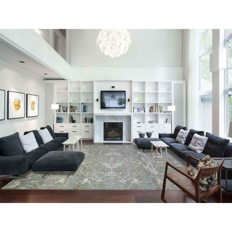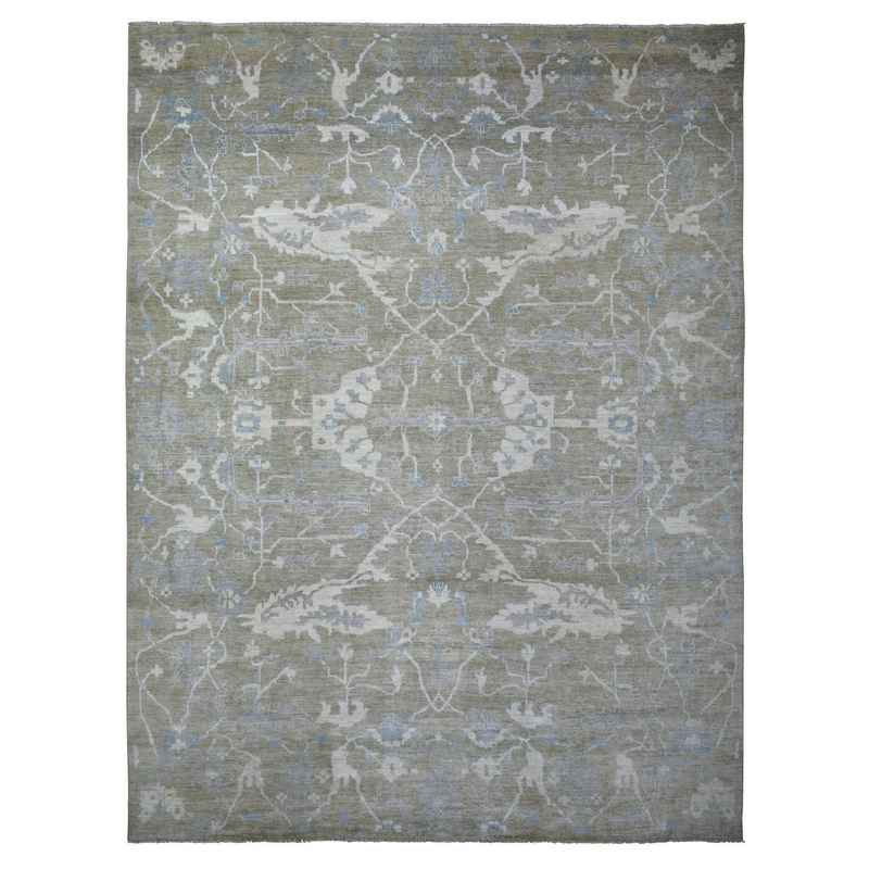 12’1″x15’5″ Gray, Afghan Angora Oushak with Motifs Soft Wool, Natural Dyes Hand Knotted, Oversized Oriental Rug Sh70999