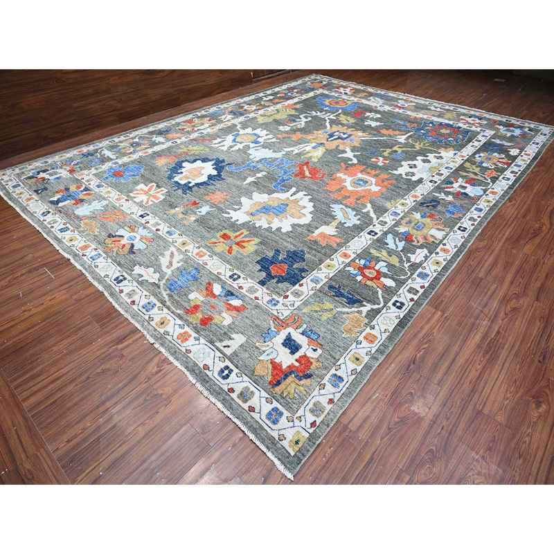 12’1″x16′ Dolphin Gray, Hand Knotted, Colorful All Over Village Medallions Design, Wool Weft, Natural Dyes, Afghan Angora Oushak, Oversized Oriental Rug Sh88702