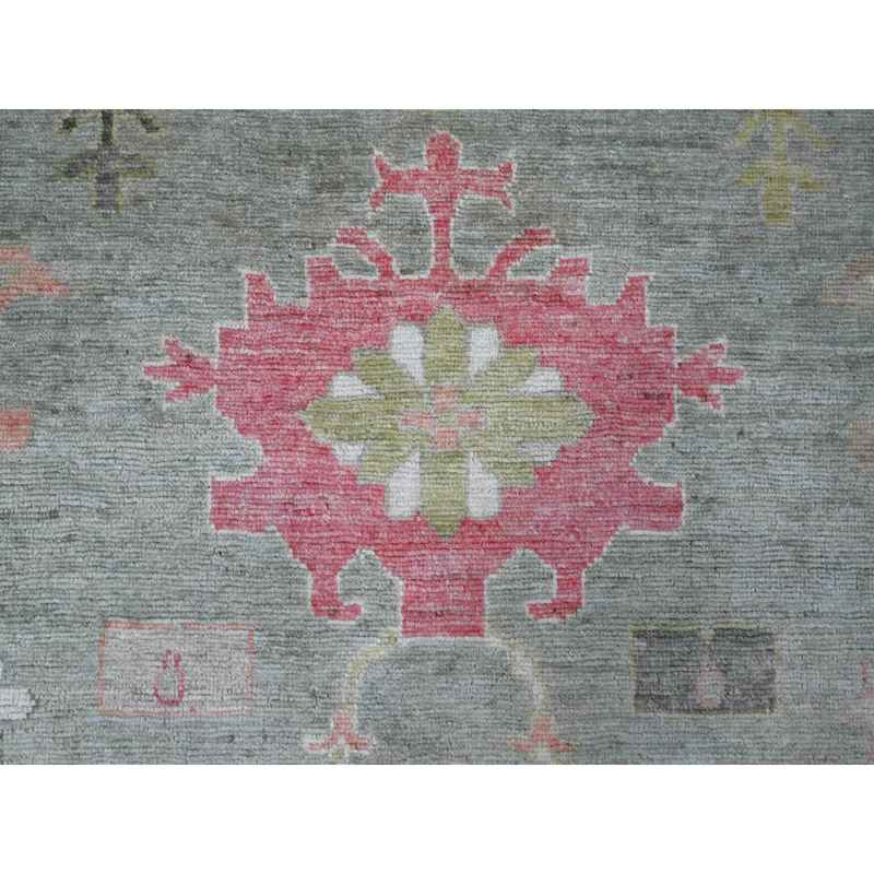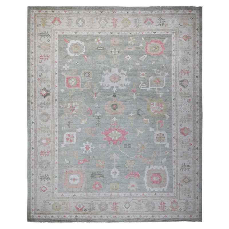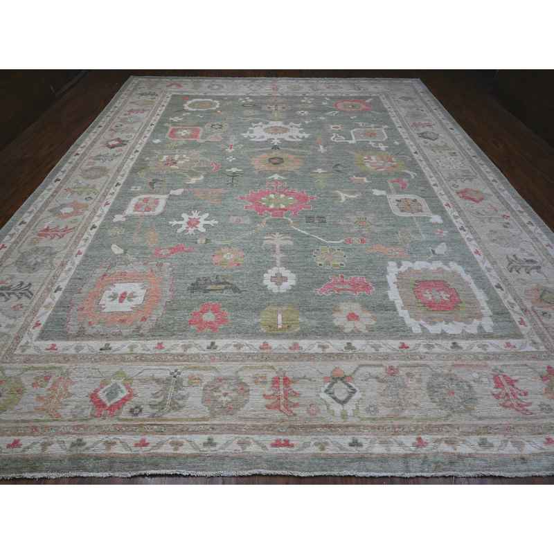 12’2″x14’5″ Silver Green, Oversized, Hand Knotted Angora Oushak, Natural Dyes, All Over Village Motifs, Oriental Rug Sh88775