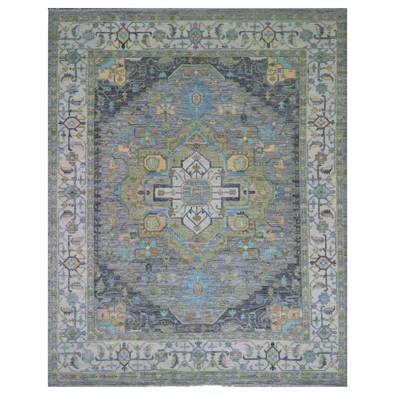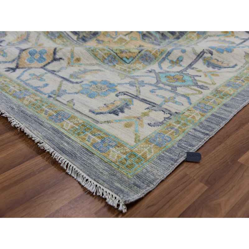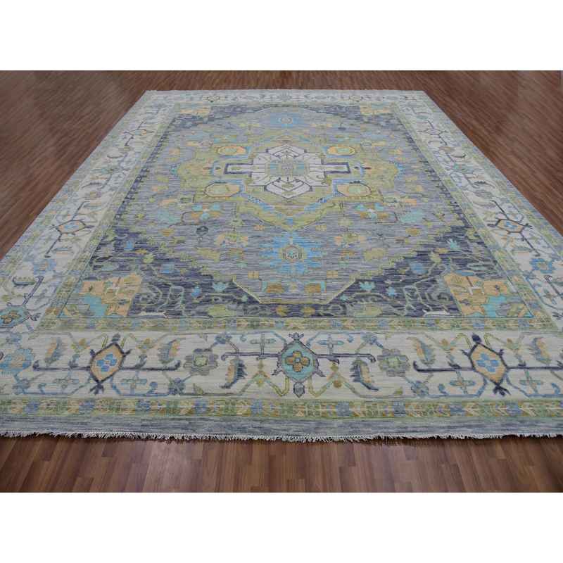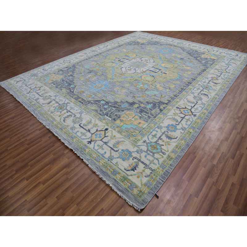 12’2″x15’4″ Slate Gray, Hand Knotted, 100% Wool, Oushak Weave with Heriz Design, Lush Pile, Vegetable Dyes, Oversized, Oriental Rug Sh79896
