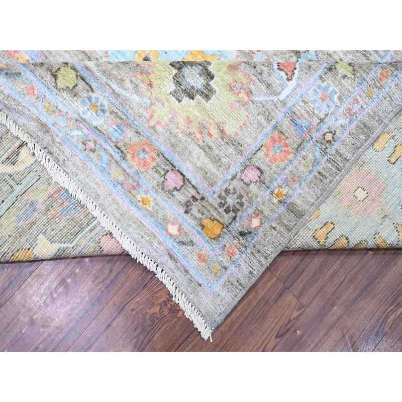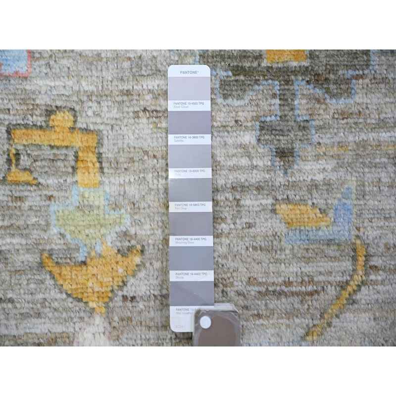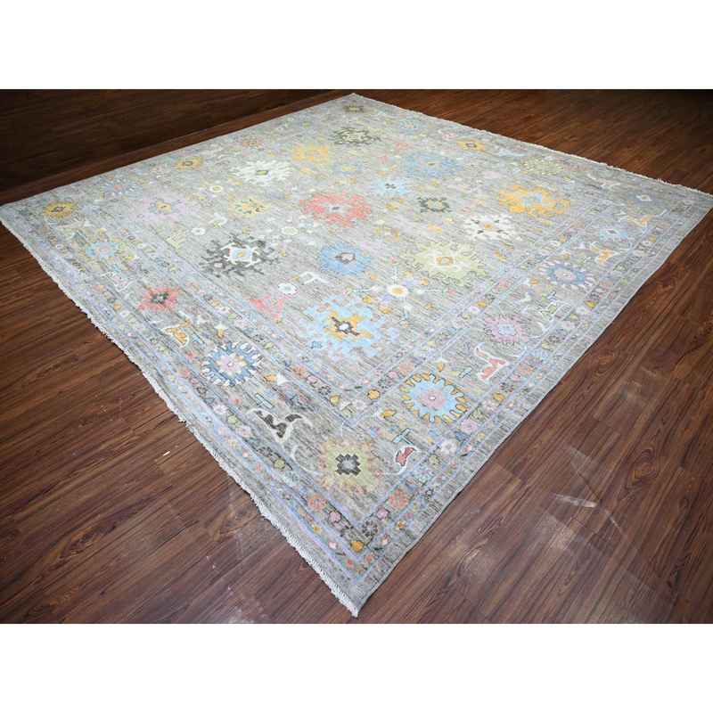 12’x12′ Taupe, Afghan Angora Oushak with Geometric Leaf Design, Vegetable Dyes, Pure Wool, Hand Knotted Square Oriental Rug Sh73285