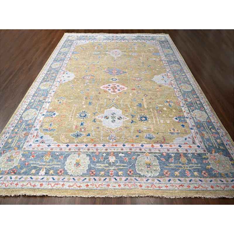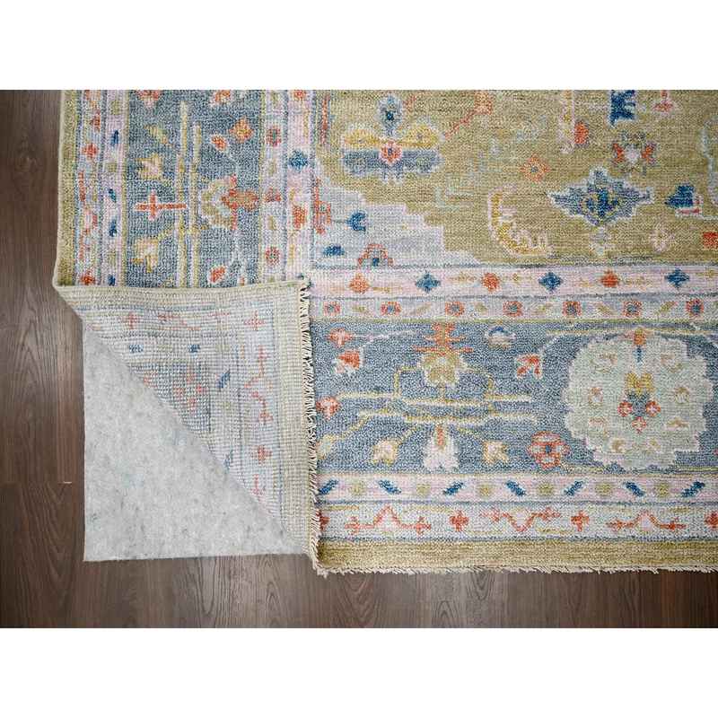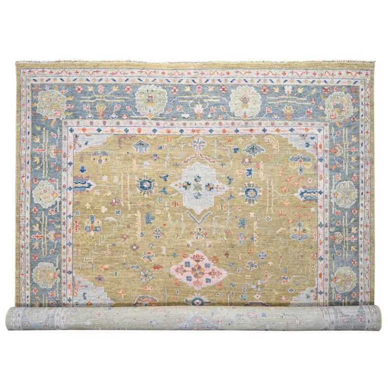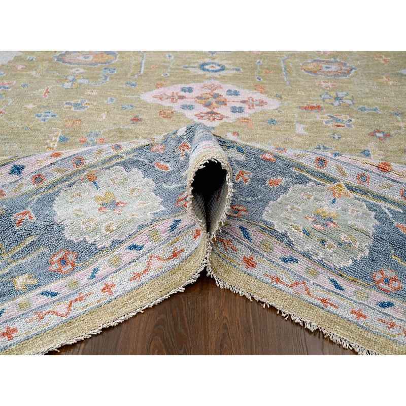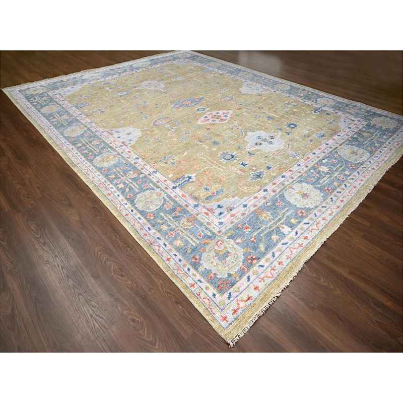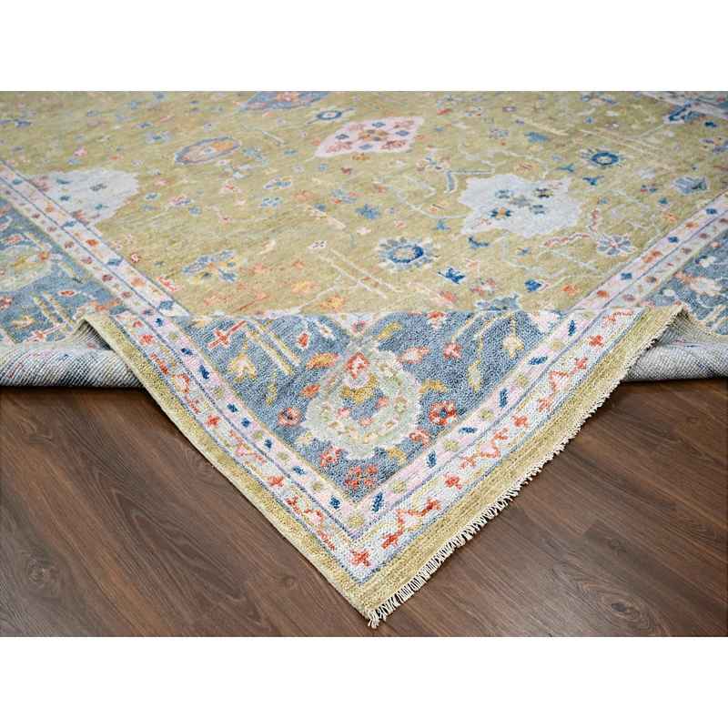 12’x14’10” Moss Green with Glaucous Blue, Oushak Design, Supple Collection, Plush and Lush Soft Pile, Organic Wool, Hand Knotted, Oversized Oriental Rug Sh84602