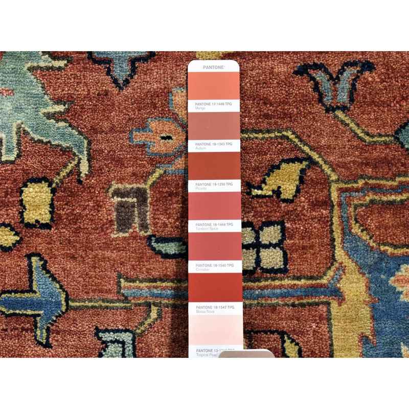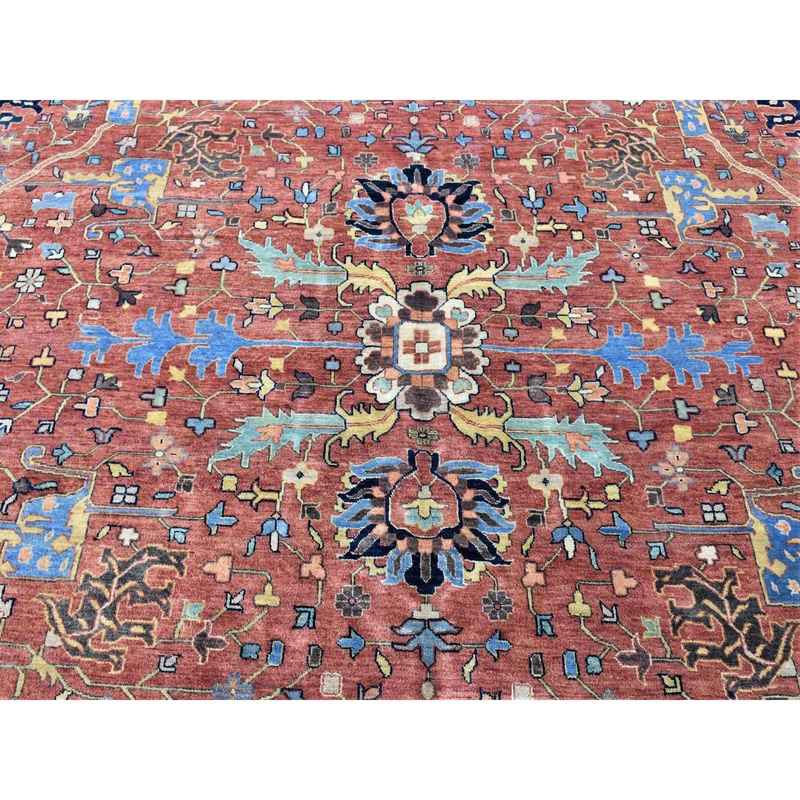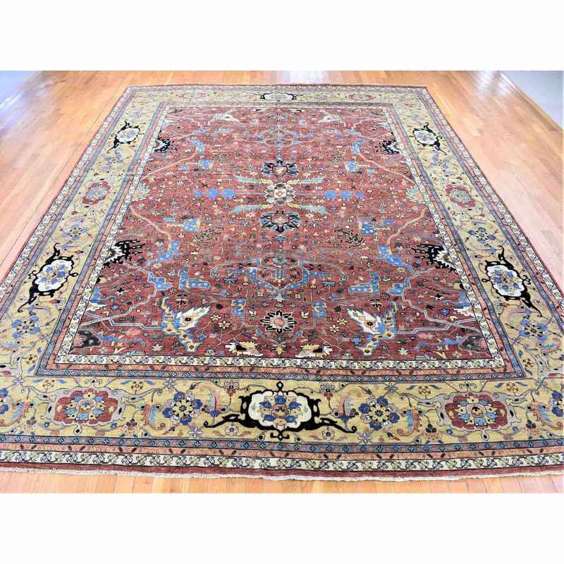 12’x14’10” Rust Red, Antiqued Heriz Re-Creation with All Over Flowers Design, Hand Knotted Pure Wool, Oversized Oriental Rug Sh80223