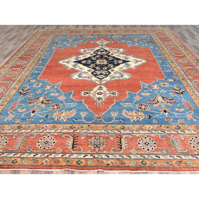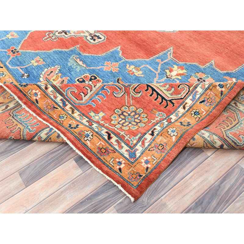 12’x14’7″ Imperial Red, Afghan Peshawar with Heriz Design, Natural Dyes, Dense Weave, Extra Soft Wool, Hand Knotted, Oversized Oriental Rug Sh85024