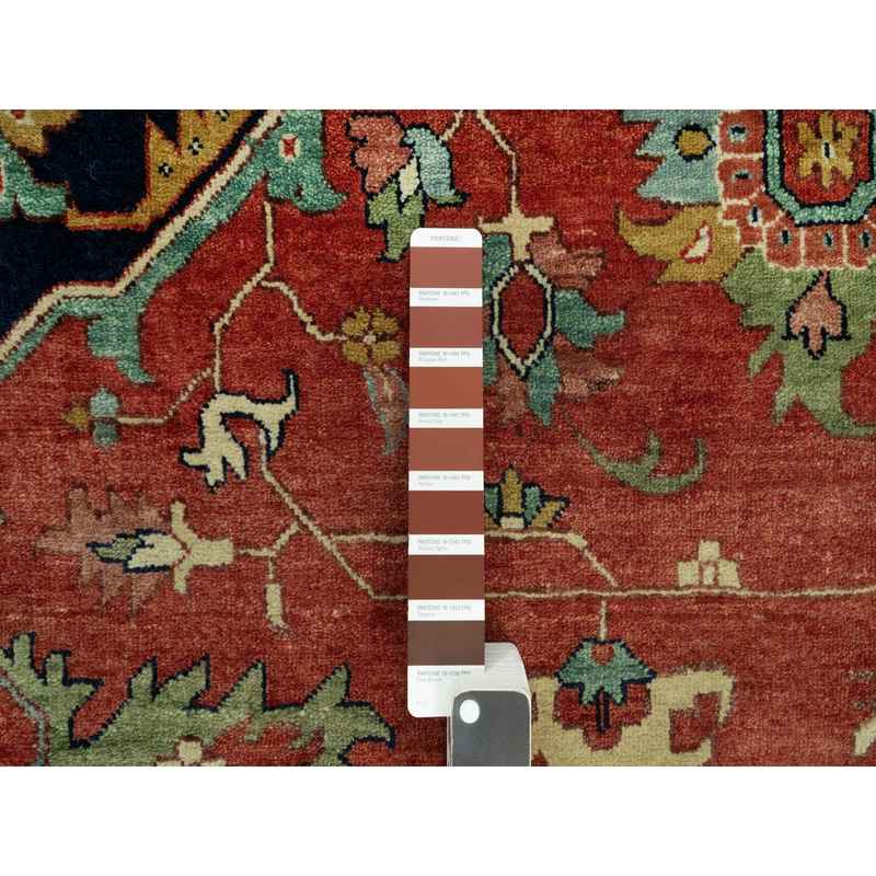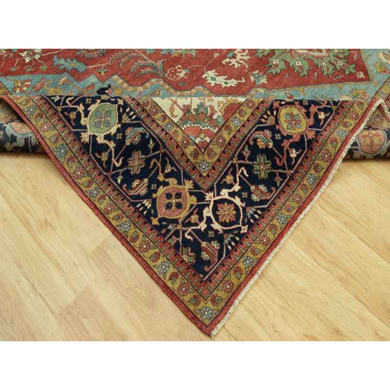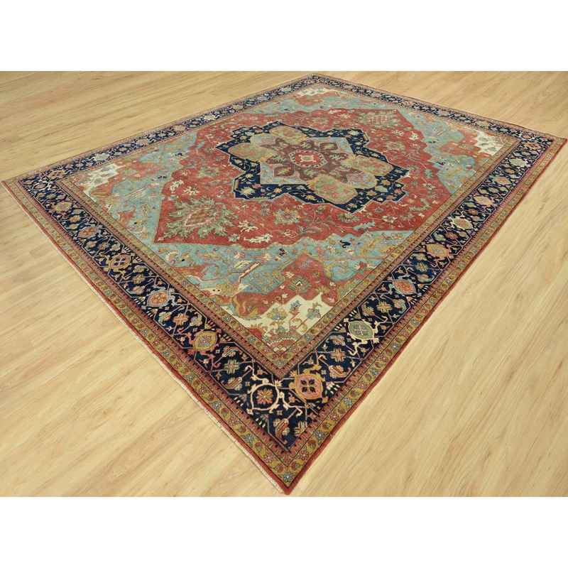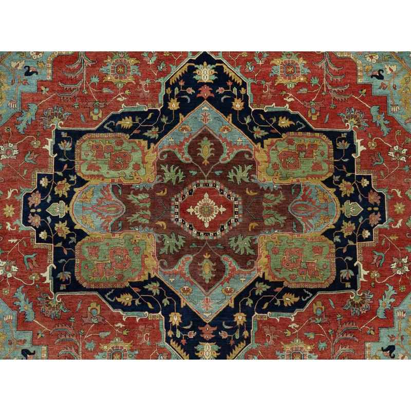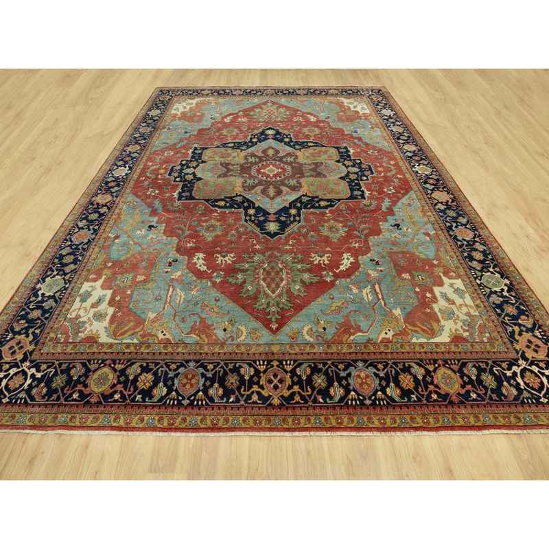 12’x15’1″ Morrocan Red and Naval Blue, Extra Soft Wool, Hand Knotted, Vegetable Dyes Antiqued Fine Heriz Re-Creation, Denser Weave, Oriental Oversized Rug Sh90665