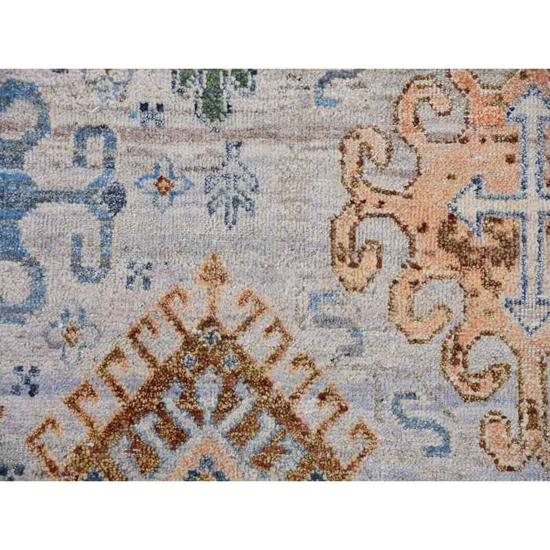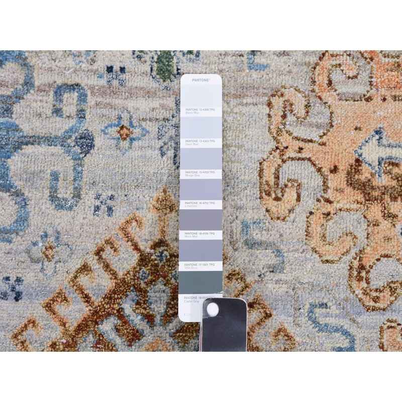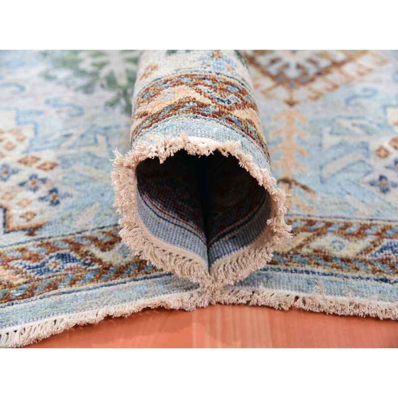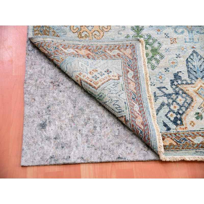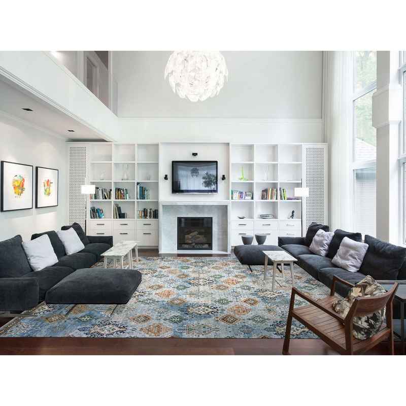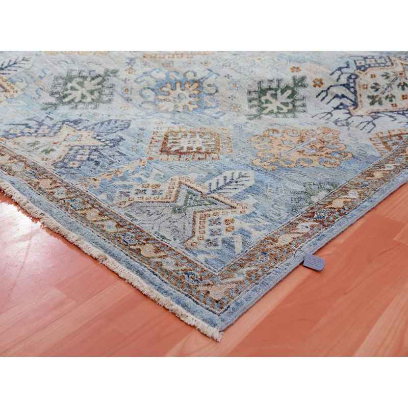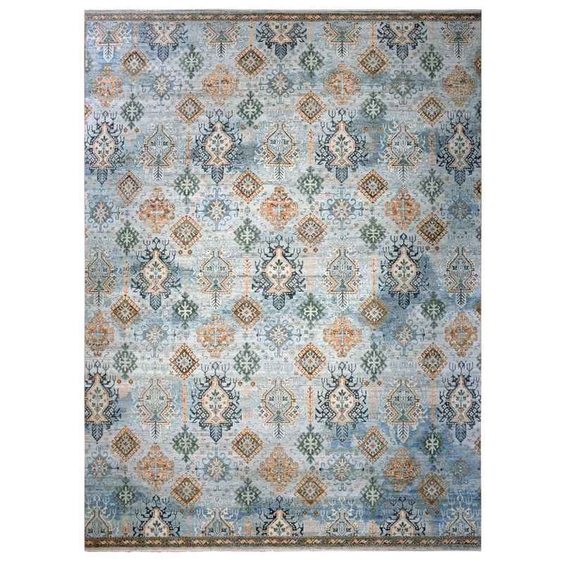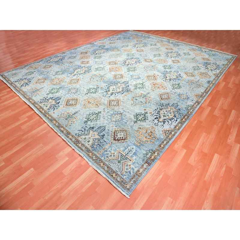 12’x15’2″ Beau Blue, 100% Wool, Vegetable Dyes, Zero Pile Shaved Down, Caucasian Gul Motifs All Over Borderless Design, Hand Knotted Oriental Oversized Rug Sh75317