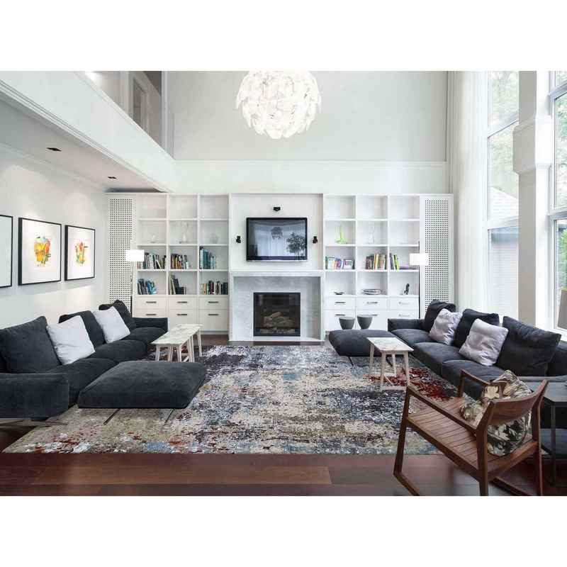 12’x15’2″ Blue Hand Knotted, Densely Woven, Persian Knot Abstract Design All Wool, Oversized Oriental Rug Sh83036