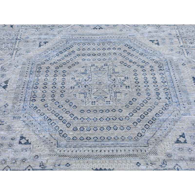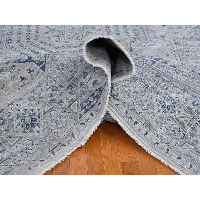 12’x15’2″ Pure Silk with Textured Wool Blue-Gray Mamluk Design Hand Knotted Oriental Rug Sh66480