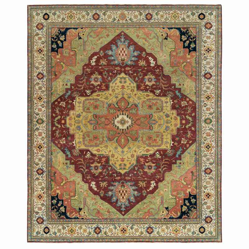 12’x15’2″ Terracotta Red, Antiqued Fine Heriz Re-Creation, Densely Woven, Natural Dyes, Organic Wool, Hand Knotted, Oversize Oriental Rug Sh65707