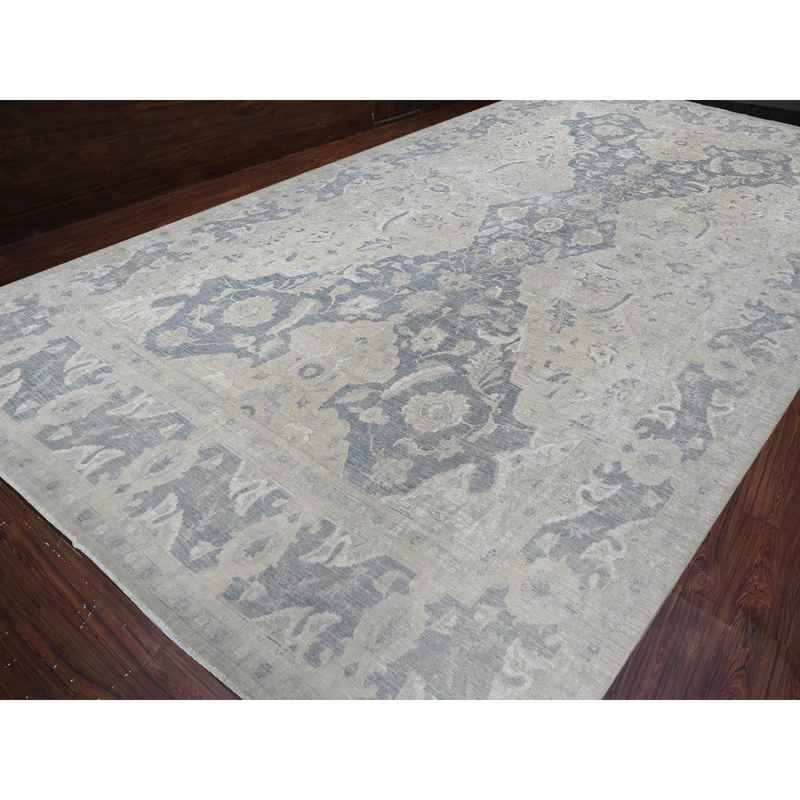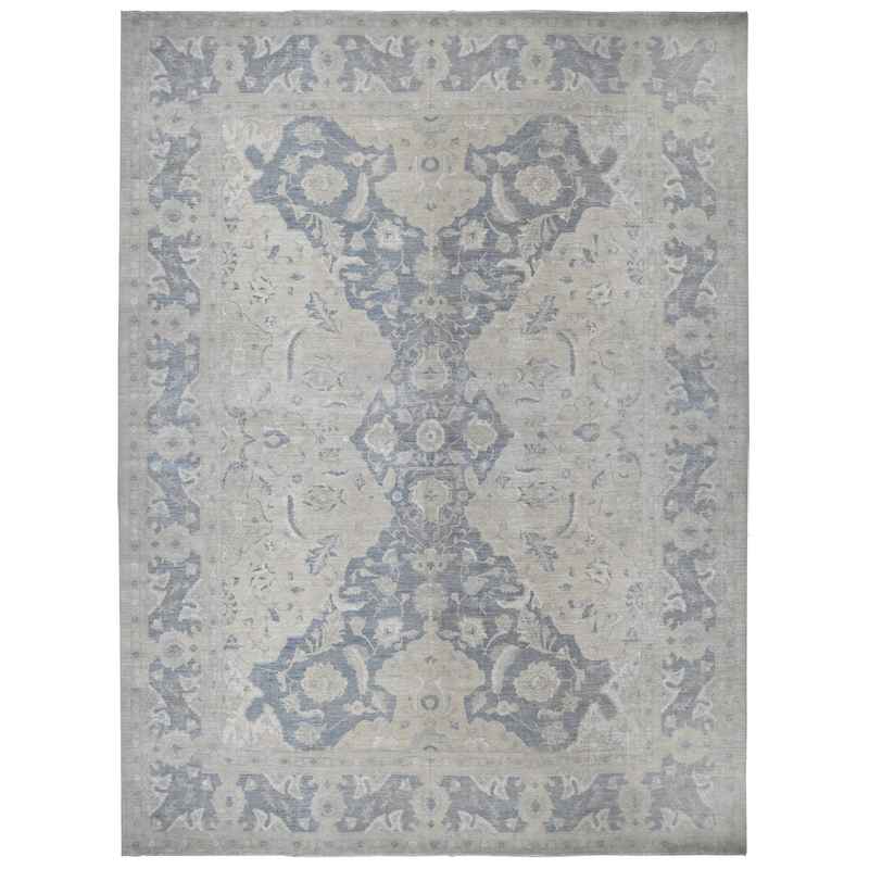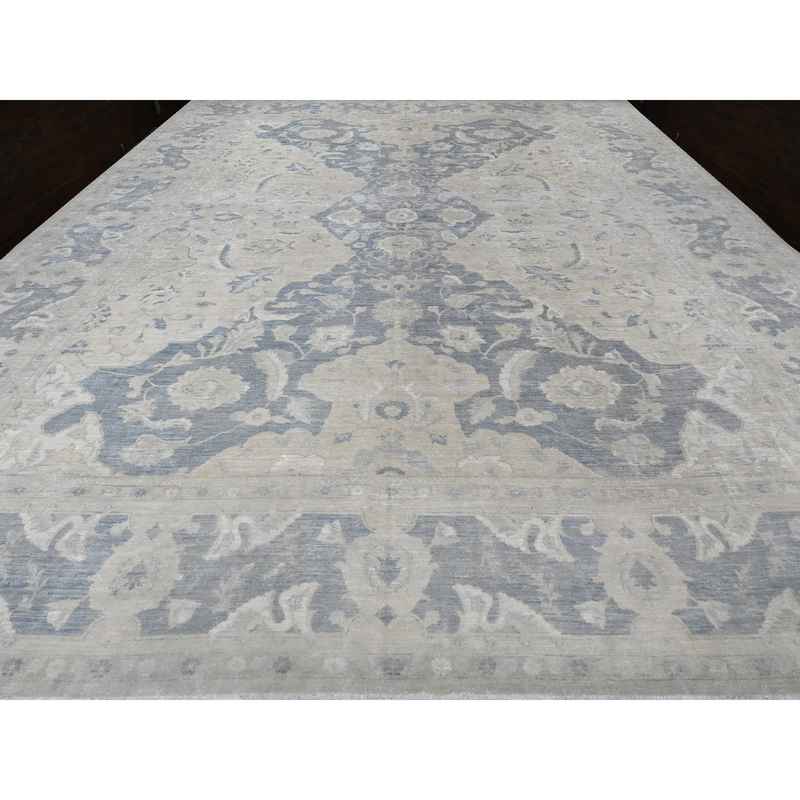 18’6″x24’2″ Paper White and Pram Blue, Washed Out Peshawar, Hand Knotted 17th Century Polonaise Design, 100% Wool, XL Size Oriental Rug Sh89478