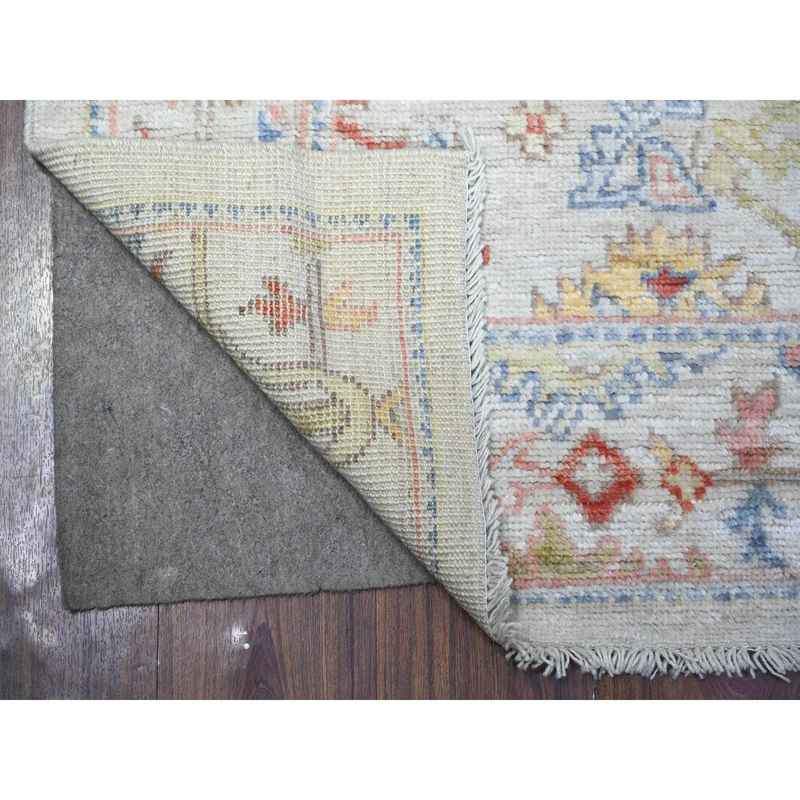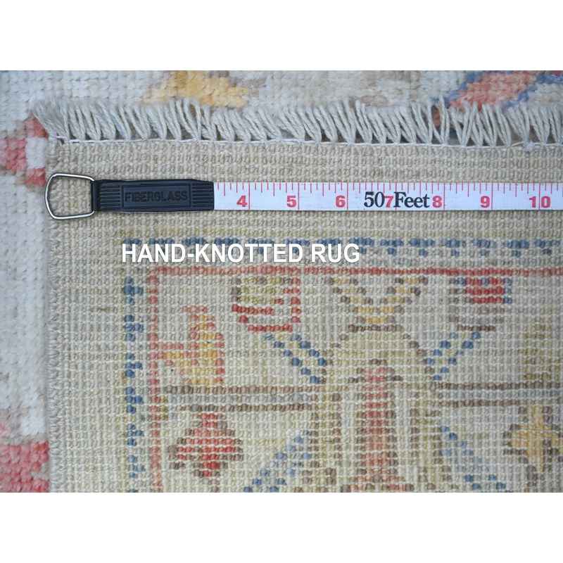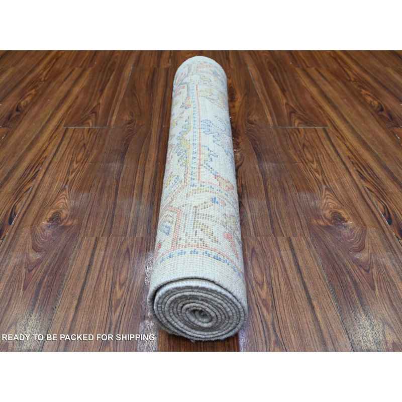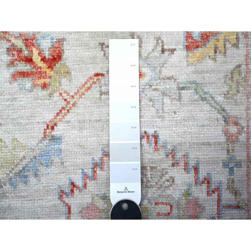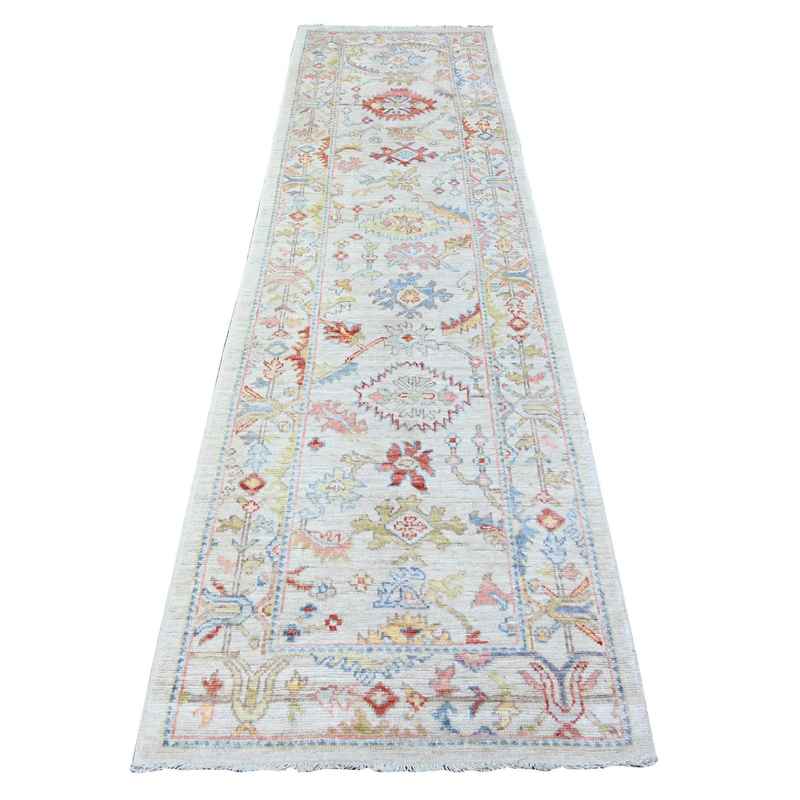 2’10″x10′ Pearl River Gray, Vibrant Wool, Hand Knotted Afghan Angora Oushak with Colorful Motifs, Natural Dyes Runner Oriental Rug Sh88458