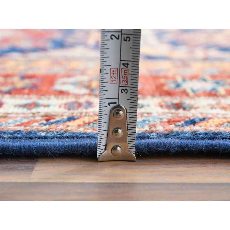 2’10″x11′ Shiny Wool Hand Knotted Navy Blue Afghan Super Kazak with Tribal Medallions Design Oriental Runner Rug Sh61452