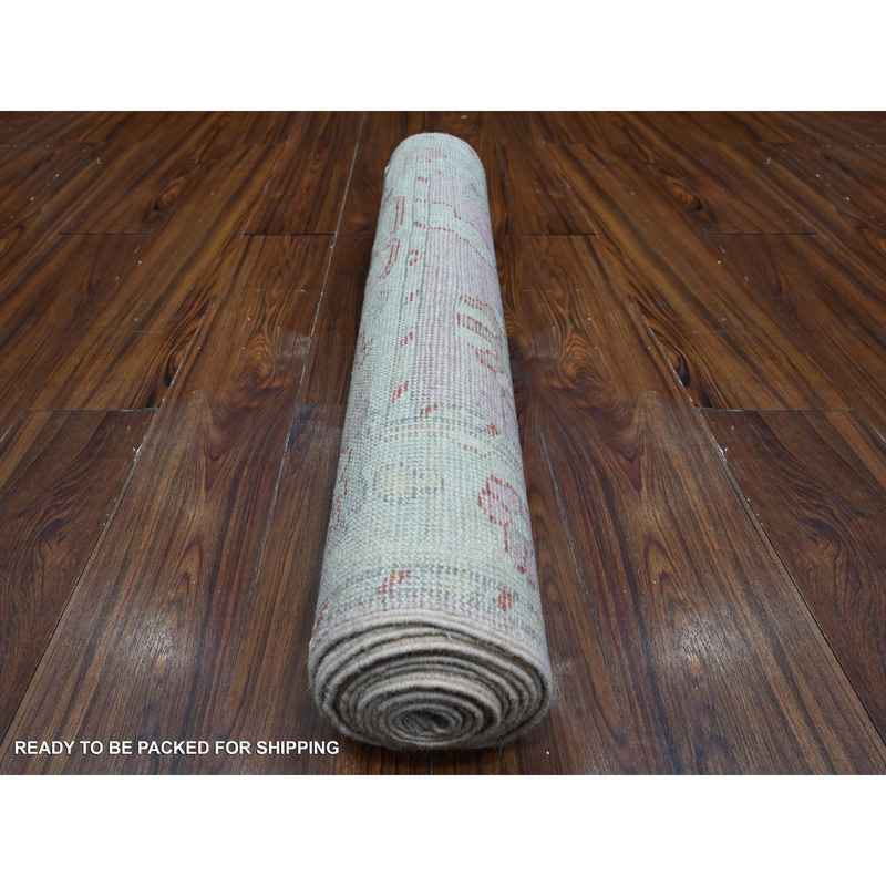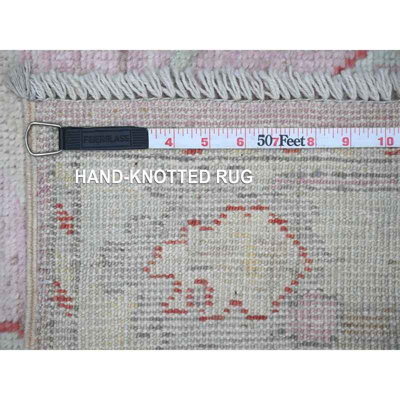2’10″x11’6″ Dust Storm Pink, Soft Wool Foundation, Natural Dyes, Hand Knotted, Village Elements All Over Design, Angora Oushak, Runner Oriental Rug Sh88821