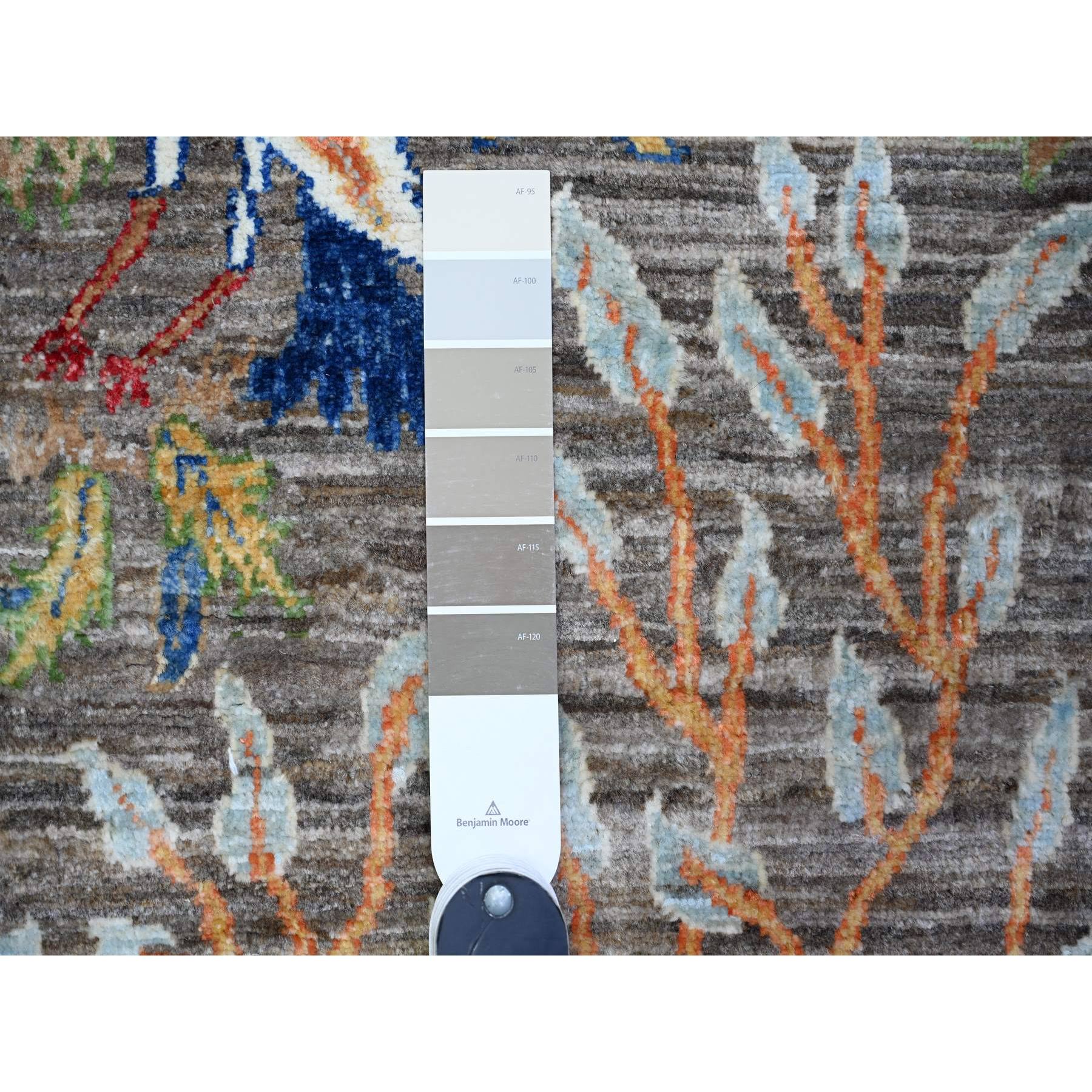2’10″x4’10” Taupe Gray, Hand Knotted Afghan Peshawar with Birds of Paradise Design, Abrash, Natural Dyes, Soft Wool, Oriental Rug Sh74348