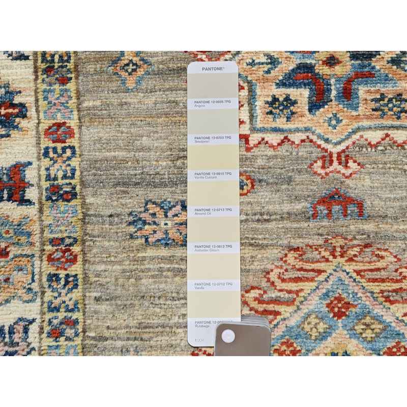 2’10″x8’3″ Ecru Color, 100% Wool Hand Knotted, Afghan Super Kazak, Natural Dyes Densely Woven, Runner Oriental Rug Sh82736