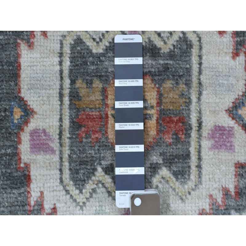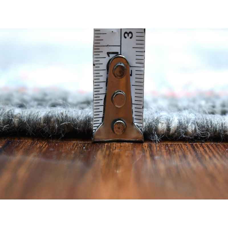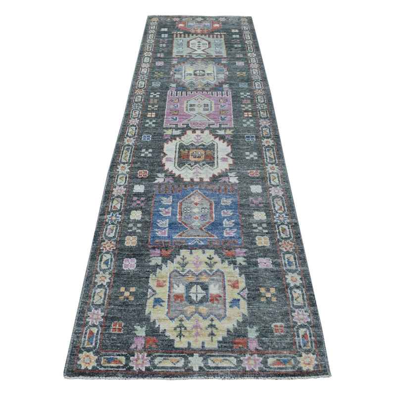 2’10″x9’10” Hand Knotted Dark Gray With Geometric Village Anatolian Design Angora Oushak Glimmery Wool Oriental Runner Rug Sh67427