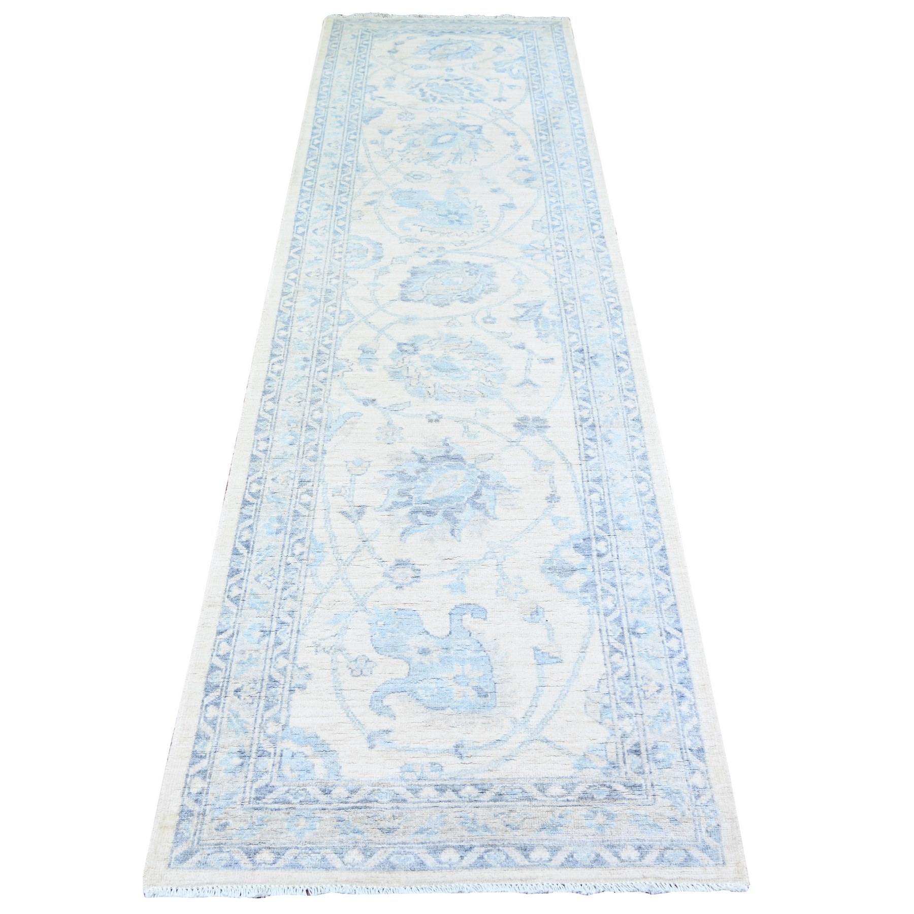 2’10″x9’7″ Old Wood Ivory and Silver Chalice, Natural Dyes Extra Soft Wool Finer Peshawar with Faded Colors, Hand Knotted, Oriental Rug Sh74582