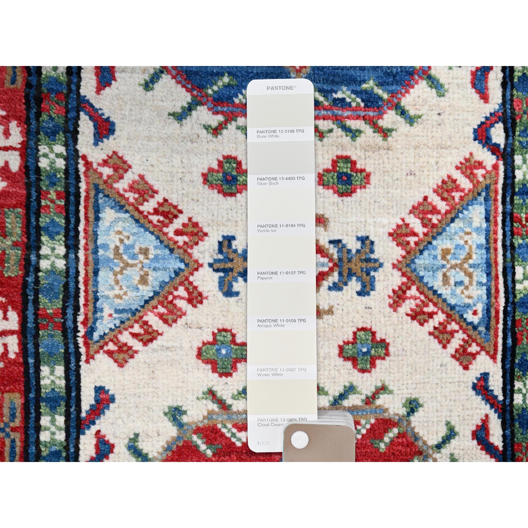 2’1″x6’1″ Winter White, All Wool, Densely Woven, Large Triple Medallions, Natural Dyes, Kazak, Hand Knotted Runner Oriental Rug Sh86827