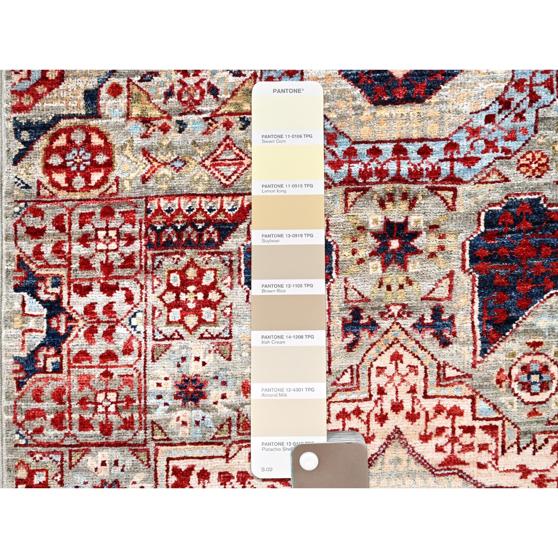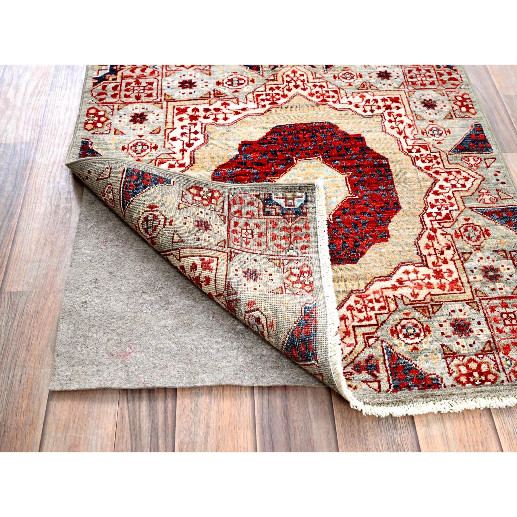 2’4″x24’8″ Chiffon White, Natural Wool, Natural Dyes, Hand Knotted, 14th Century Mamluk Dynasty Pattern, 200 KPSI, XL Runner Oriental Rug Sh85846