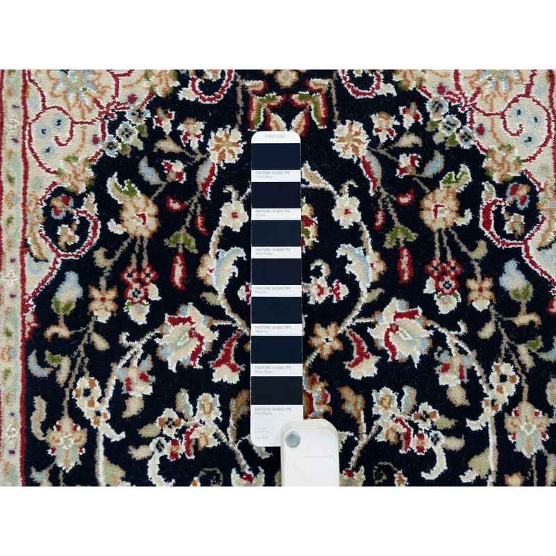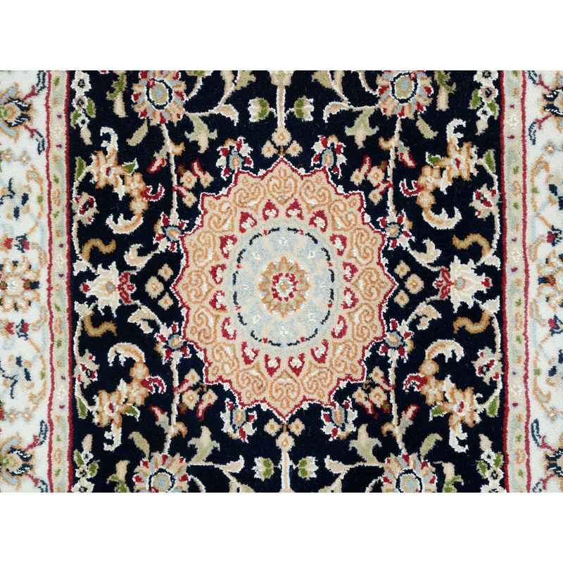 2’4″x4’9″ Midnight Blue, Nain with Center Medallion Flower Design, 250 KPSI, Hand Knotted, Natural Wool, Oriental Rug Sh65377