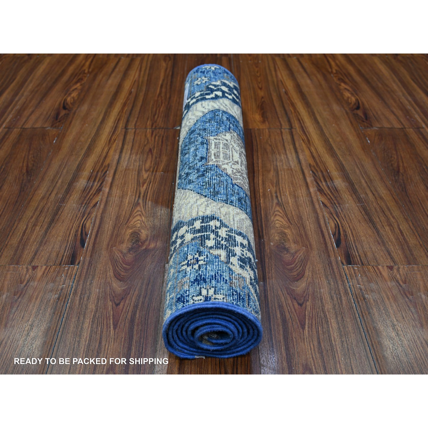 2’4″x6’8″ Astros Navy Blue, Dense Weave Vegetable Dyes, Soft Wool Hand Knotted, Fine Aryana with Mamluk Borderless Design, Runner Oriental Rug Sh88345