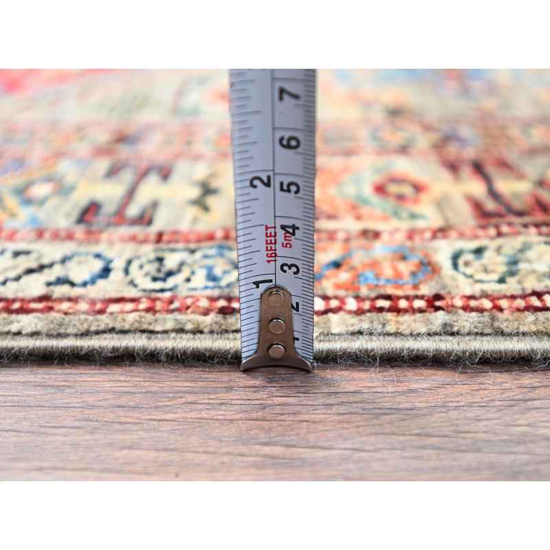 2’5″x6’8″ Agreeable Gray, Denser Weave Organic Wool Hand Knotted, Afghan Super Kazak with Colorful Medallions, Natural Dyes, Runner Oriental Rug Sh86906