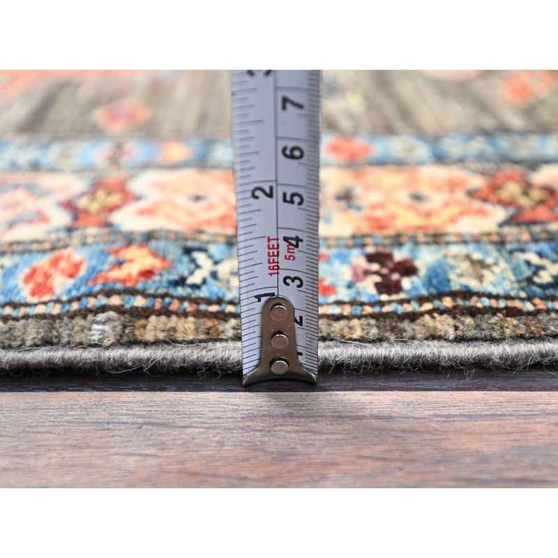 2’5″x6’8″ Mouse Gray, Natural Wool, Hand Knotted, Afghan Super Kazak, Geometric Medallions Design, Vegetable Dyes, Denser Weave, Runner Oriental Rug Sh86908