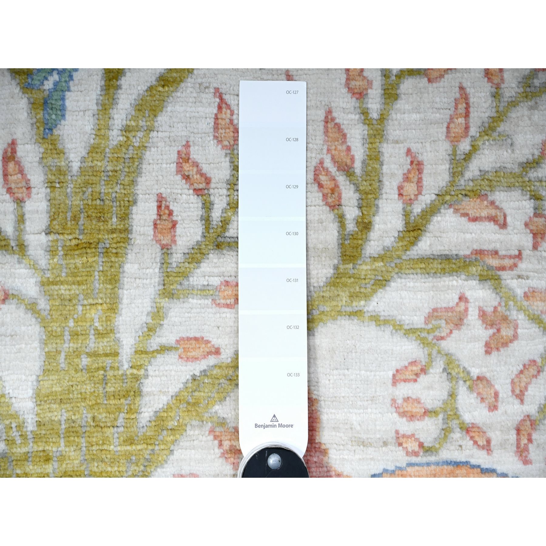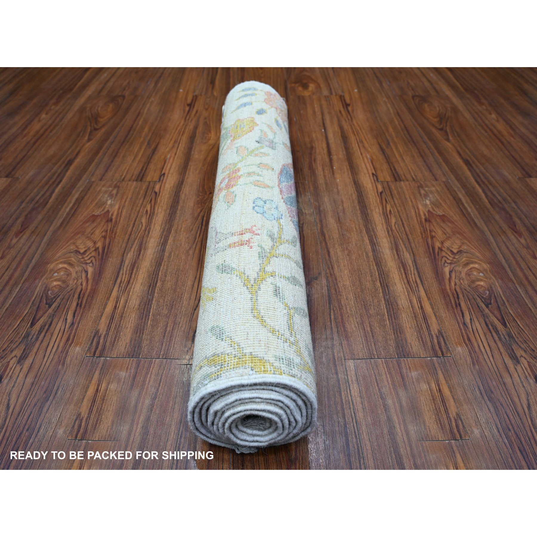 2’5″x7’10” Rose White, Natural Dyes Hand Knotted, Natural Wool Afghan Peshawar With Birds Of Paradise Design, Abrash, Runner Oriental Rug Sh74757