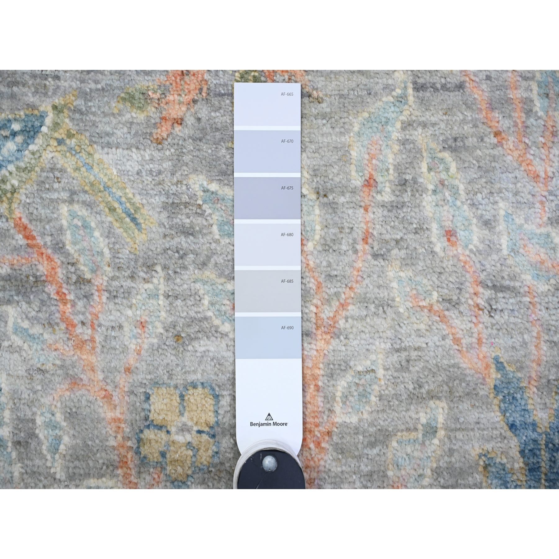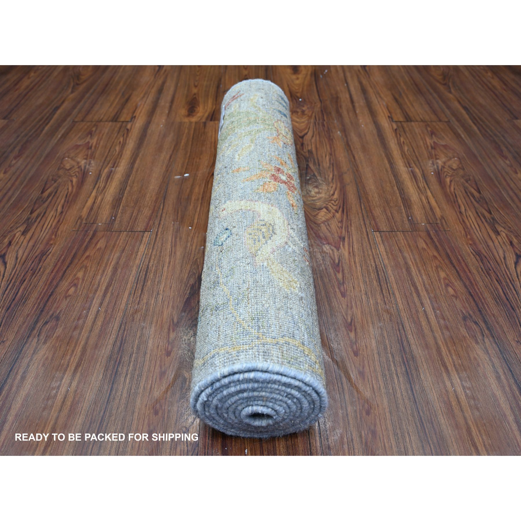 2’5″x8’3″ Cadet Gray, Vegetable Dyes Birds of Paradise Hand Knotted Natural Wool Afghan Peshawar Designs, Round Oriental Rug Sh74917