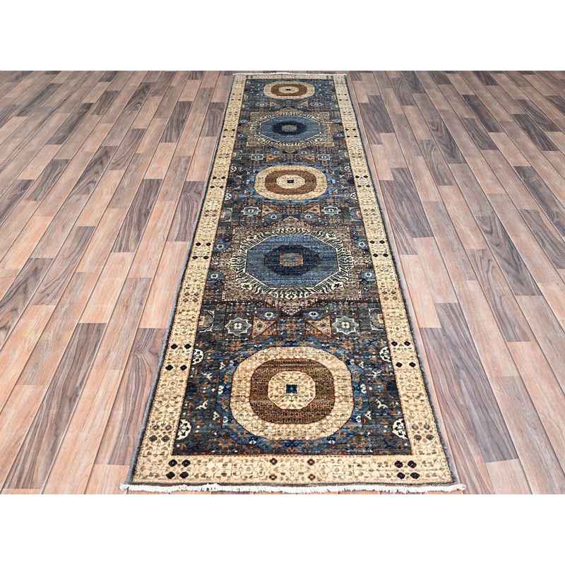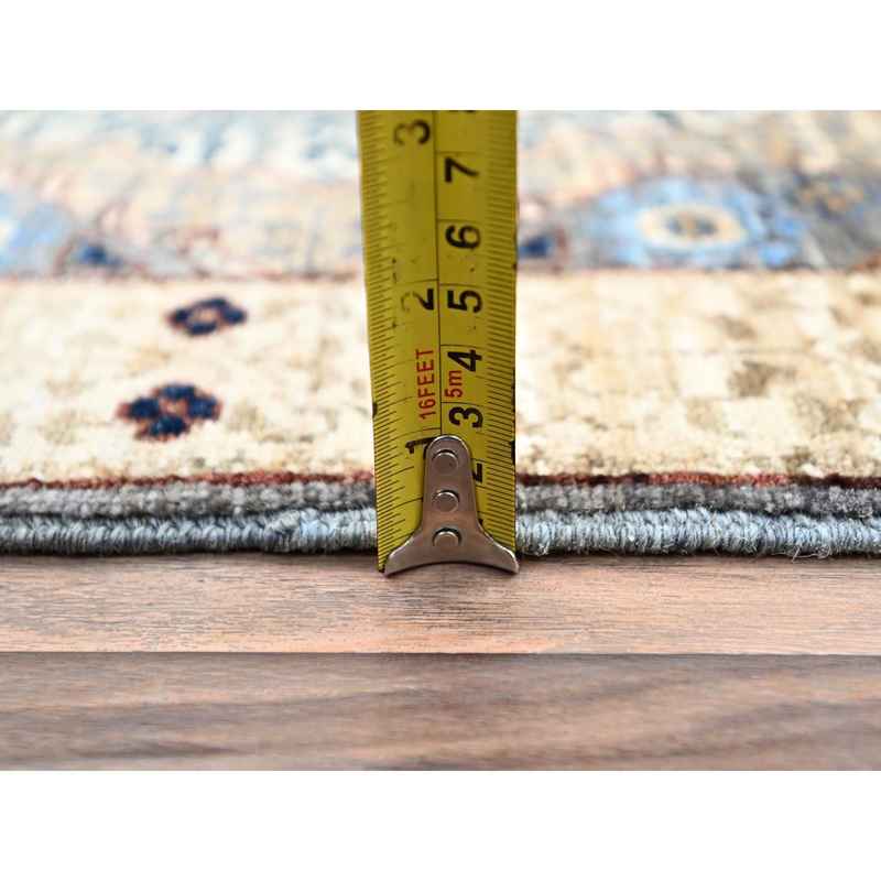 2’5″x9’10” Oyster Mushroom Gray, Extra Soft Wool Vegetable Dyes, 14th Century Mamluk Dynasty Pattern, Large Motifs, Hand Knotted Runner 200 KPSI Oriental Rug Sh86749