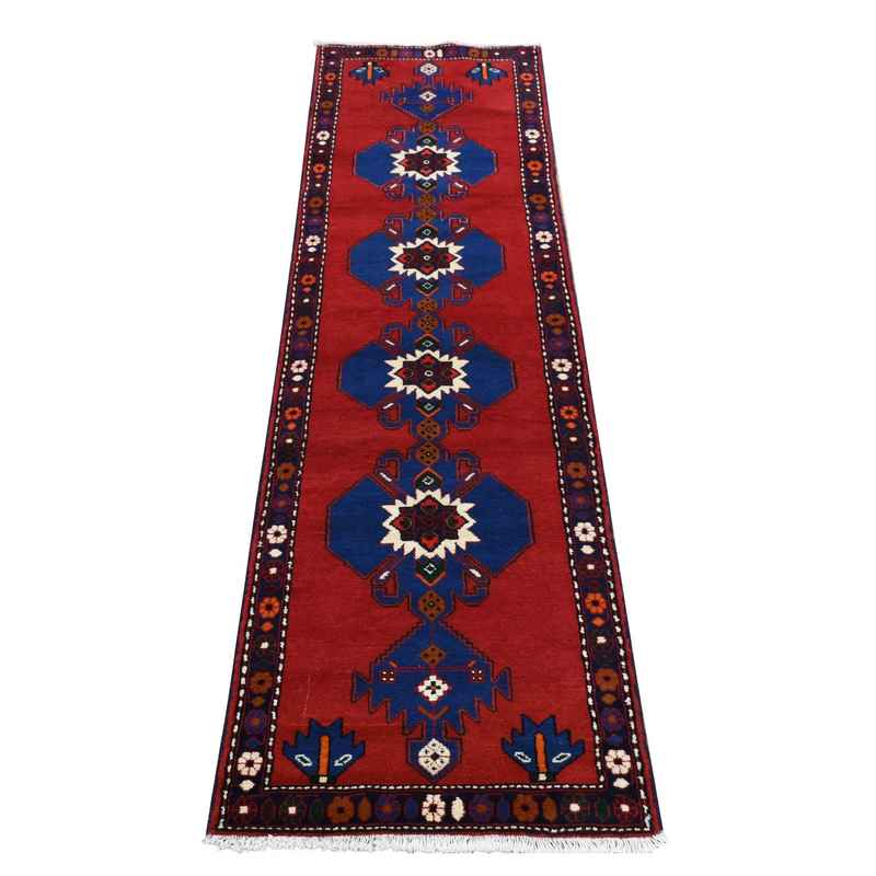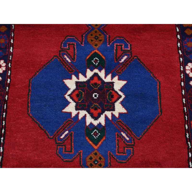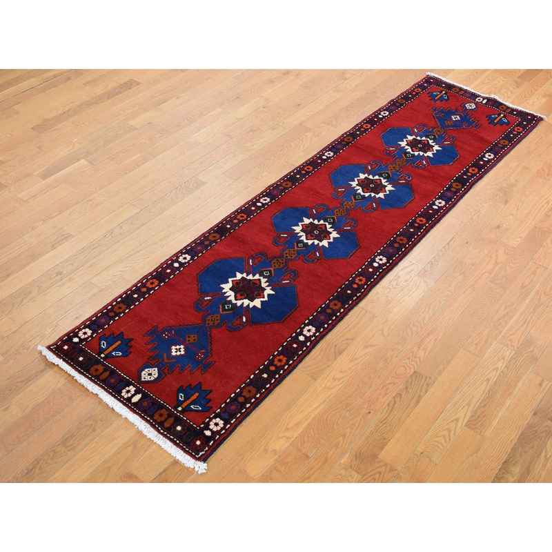 2’5″x9’5″ Maroon Red, New Persian Hamadan, Hand Knotted, Pure Wool, Repetitive Geometric Medallion Design, Open Field, Runner Oriental Rug Sh87603